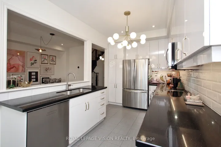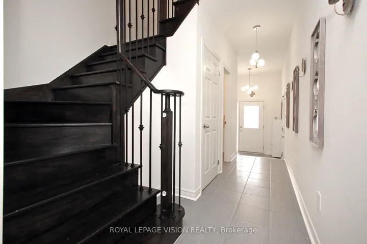 +"PublicRemarks": "Welcome to this modern John Boddy Homes built freehold townhome (no maintenance fees and no sidewalk to shovel), offering approx. 1,700 sq ft of stylish living space and built less than 5 years ago. A spacious foyer with inside garage access leads to a bright open-concept main floor featuring an eat-in kitchen with ceramic flooring, granite countertops, stainless steel appliances, pantry and ample cabinetry, with walk-out to a private fenced yard. The main level is highlighted by a custom half-wall overlooking the dining and great room with a cozy gas fireplace and large windows, plus a convenient 2-piece powder room. Upstairs, the primary bedroom features a walk-in closet and 4-piece ensuite with double sinks, along with two additional generous bedrooms and a rare upper-level laundry room with sink. The unfinished basement offers a 3-piece rough-in and awaits your personal touch. Upgrades include 200-amp service, central air, hardwood stairs, upgraded baseboards, energy-efficient windows and gas BBQ hookup, all conveniently located close to shopping, schools, transit and major amenities."