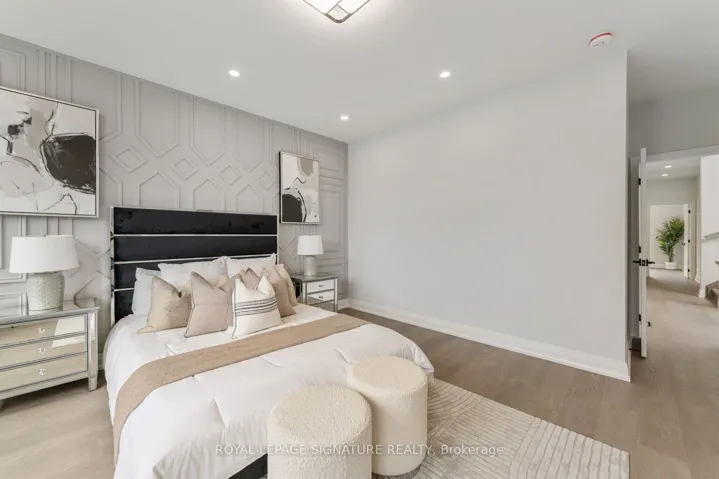 +"PublicRemarks": "Majestic 4+1 Bedroom, 5 Bathroom Detached Home Situated on a premium 112.5 ft deep lot! This stunning property offers 2,481 sq ft above grade + 900 sq ft of finished basement space.Impressive curb appeal with stone and ACM Panelling exterior, elegant interlocking and a large covered front porch. Open-concept main floor highlighted by gorgeous engineered hardwood flooring and custom wainscoting. Spacious dining room ideal for entertaining, with seamless flow into the Family Room featuring built-in cabinetry and a gas fireplace with a sleek feature wall. Chefs kitchen boasts a sleek two-tone design, quartz countertops, matching backsplash, custom pendant lighting, a waterfall center island, high-end built-in appliances, and a full separate pantry. The living room features a gorgeous detailed accent wall and massive windows.Luxurious primary retreat offers a spa-inspired 7-pc ensuite, custom walk-in closet with organizers, and a feature wall. A secondary bedroom includes its own private 4-pc ensuite and double closet. 3rd and 4th Bedrooms share a 4pc bath and both include double closets! Convenient second-floor laundry room included.The fully finished basement features LED pot lights, a stylish full kitchen with quartz counters, stainless steel appliances, a 4-pc bathroom with custom tiling, separate laundry, and direct walk-out access. Includes 1 spacious bedroomsperfect for an in-law suite or income potential and a massive rec room can be split to create a 2nd bedroom!Fully fenced backyard with a large sun deck and a large shed! Steps to the TTC and the grand Stan Wadlow Park and Taylor Creek Trails!"