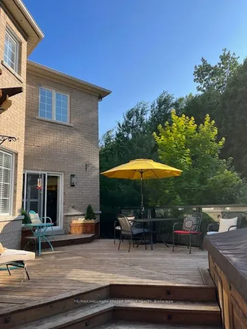 +"PublicRemarks": "Tucked at the end of a quiet cul-de-sac, this end-lot detached sits beside the ravine with no neighbour to the west. The west side and backyard are wrapped in treeline and conservation, creating a true sense of retreat, where your daily view is greenery, birdsong, and sunset light filtering through the canopy. Curb appeal begins with an interlocking walkway framed by two interlocking flower beds. Out back, the lifestyle is the headline: step onto a generous deck with a pergola set against the forest edge. Entertain with a gas BBQ connection, gather around the gas fire pit, then unwind in the Arctic Hot Tub Swim Spa, all while the ravine and treeline deliver privacy you can feel. Thoughtful native plantings and trees invite monarchs and songbirds, while an outdoor pot light system extends the atmosphere into the evening. Inside, the main level offers a formal dining room with hardwood floors, a vaulted ceiling, pot lights, and a large window overlooking the trees. The open-concept kitchen features a wrap-around counter, tile backsplash, ceramic flooring, and a bright breakfast area with a walkout to the deck (glass door with shutters) plus a west-facing window to the ravine. The living room is warm and light-filled with a gas fireplace, hardwood, and large windows on two sides. Upstairs, an open study/loft with hardwood provides flexible work-from-home or lounge space. Bedrooms are generously sized with excellent closet storage. The primary suite impresses with a spa-like ensuite (soaker tub, glass shower, double vanity, separate toilet) and a custom built-in closet system. Second-floor laundry for added convenience. Finished basement includes two rooms and a 3-piece bath; currently used as a guitar/wood workshop. Equipment may stay or be removed. Minutes to Seaton Centre shops, banks, cafés, dining, trails/green space, and Pickering Golf Club. Furnace 2015, AC 2016, Roof 2015, HWT 2015, Hot Tub Swim Spa 2016, Deck & Pergola 2016. Window 2015"