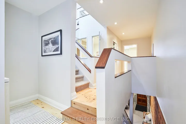 +"PublicRemarks": "A Leslieville gem! This charming red brick 3 storey is perfect for anyone seeking a home with vintage charm and architectural character, in one of Toronto's most vibrant neighbourhoods. Spend your summers on the front porch, overlooking the yard and quiet street. Step inside the foyer that leads into an open concept living space with an airy, triple-height dining room spanning to the top floor, creating a stunning sense of volume and light. Beautifully complimented by a living room with exposed brick, stained glass, and anchored by a vintage fireplace. At the back of the home you will find a powder room and a modern kitchen with a walkout to deck and backyard, with a path to an oversized detached garage for parking off the lane. On the second floor, two well-appointed bedrooms with hardwood flooring, and convenient second-floor laundry. The skylit third floor hosts the primary bedroom suite with a 3-piece ensuite and walk out to a private rooftop deck. Step outside, and you're in the heart of one of Toronto's most beloved neighbourhoods. Just down the street, Pilot Coffee Roasters and a host of trendy eateries await, along with local breweries and live entertainment at venues like the Toronto Operetta Theatre and The Opera House. Nearby parks like Jimmie Simpson and Greenwood Park offer a slice of green for outdoor activities and the annual Leslieville Farmer's Market. With easy access to public transit, downtown and the sandy shores of Cherry Beach are only a short commute away. Morse Street Junior Public, Queen Alexandra, and Riverdale CI school district. A must see with its unforgettable blend of charm and architectural drama!"