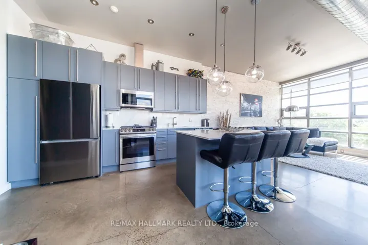 +"PublicRemarks": "Absolutely stunning loft space in the heart of Kingston Village. Circular floor to ceiling windows shower natural light all day. 850 sq ft of intelligent open space. Polished concrete floors. Exposed ducts. Modern space with quartz kitchen countertops and backsplash. 10 foot ceilings throughout. Stainless steel appliances. Great parking spot on the ground floor fits a small to medium size vehicle. Storage locker. Common Bicycle area in basement. The Primary bedroom has a large & high walk in closet. Convenient guest 2 piece bathroom. There's a clear view from the living room and balcony to the south and west. The balcony feels like a terrace and has a Gas BBQ with gas line. Measurements are from builder plans. Owner will consider leaving some furniture for Tenant use. Blomus stainless steel ethanol fireplace (Seller may consider allowing use). Tenant responsible for hydro and tenant insurance. Photos are from the previous listing."