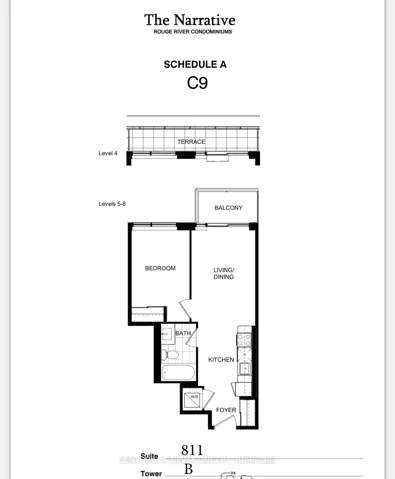 +"PublicRemarks": "Welcome to The Narrative - a never-occupied condo in Toronto's desirable Rouge community. This bright, open-concept suite features large windows, smooth ceilings, and a smart layout with walk-out to a private balcony. One exclusive parking space, one locker and WIFI are included. Has the option of coming furnished with a bedroom set - living room set, including a 52" TV. The modern kitchen includes quartz countertops, ample cabinetry, and brand-new stainless steel appliances. The spacious bedroom offers great storage, and the unit includes a contemporary 3-piece bathroom and in-suite laundry for added convenience. Enjoy premium building amenities such as 24/7 concierge, fitness centre, yoga studio, co-working lounge, party and games rooms, children's play area, outdoor terrace with BBQ area, visitor parking, and fibre optic internet. Excellent location with quick access to Hwy 401, Rouge Hill GO, TTC transit, shopping, schools, and Rouge National Urban Park. Ideal for professionals or students seeking modern, convenient living - Live Where you're Inspired!"