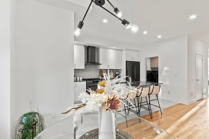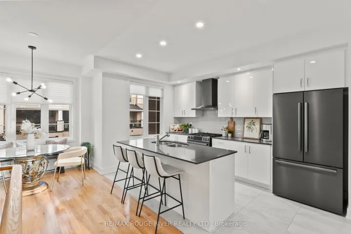 +"PublicRemarks": "OPEN HOUSE SAT/SUN FEB 28 & MAR 1ST 2-4PM Welcome to this beautifully maintained 3-year-old home offering modern finishes, thoughtful upgrades, and an unbeatable Whitby location. With almost 1,800 sq ft of finished living space, this home offers room for everyone. The kitchen is a true standout, featuring high-end Bosch black stainless steel appliances, including a gas stove and sleek quartz countertops. Designed with desirable east and west exposures, the home is filled with natural light throughout the day, creating a bright and airy atmosphere from morning to evening. The living room walks out to a private deck with motorized shades on the door for added comfort and privacy. Pot lights paired with newer light fixtures throughout. The main floor laundry room is thoughtfully designed with custom built-in cabinetry, adding both convenience and storage. Upstairs, the spacious primary retreat offers a walk-in closet, sliding doors that lead to a private balcony and a private en-suite bath designed for relaxation, along with two additional generously sized bedrooms and a full bathroom ideal for family or guests. The additional space on the main level is perfect for a family room, home office, or kids' playroom. An upgraded front door enhances the home's curb appeal and welcoming first impression. Enjoy the convenience of interior access to the garage equipped with opener, making everyday living seamless. Location is everything, and this one delivers. Just a 2-minute drive to Highway 401 and the GO Station, and close to the Durham bus terminal, shopping centres, and restaurants. Perfect for families, you're minutes from the Abilities Centre, Iroquois Sports Centre, Victoria Fields, Whitby Harbour, Rotary Sunrise Lake Park, and Port Whitby Marina. A move-in ready home that blends style, function, and an exceptional lifestyle opportunity."