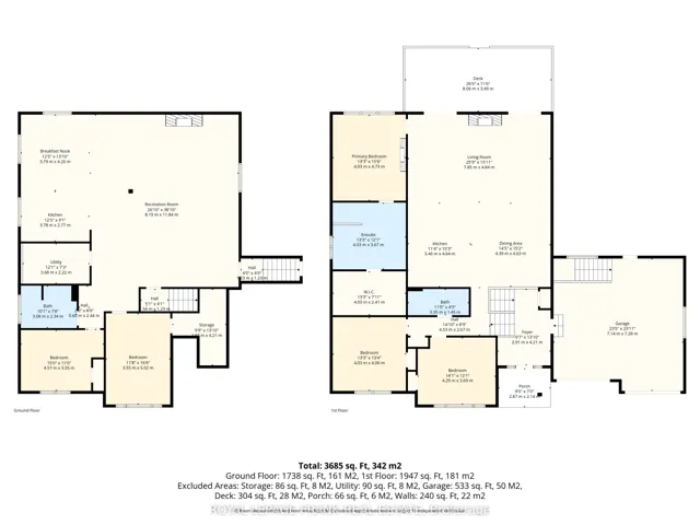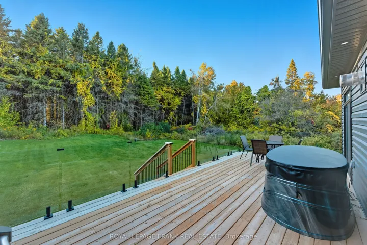 +"PublicRemarks": "Welcome to this stunning custom-built raised bungalow on a private 80x200 ft fenced lot withno rear neighbours, directly across from Lake Scugog. Offering 3+2 bedrooms, 3 full bathrooms, and 2 kitchens, this home delivers high-end finishes, thoughtful design, and versatility forfamilies or multi-generational living. The main level features a bright open-concept layout with 9 ft ceilings and a soaring 14 ft vaulted ceiling in the living area, complete with a fireplace and two walkouts to a spacious back deck with glass railings and a natural gas hookup. The custom kitchen showcases quartz countertops, a large island, built-in dishwasher ,and gas range. Hardwood flooring runs throughout the main floor, complemented by custom oak stairs and railings, plus a built-in two-zone speaker system in the main living area and primary suite. The primary bedroom offers a fireplace, walk-in closet, and a finished 5-piece ensuite. The fully finished lower level provides excellent flexibility with a second kitchen,two oversized bedrooms, full bathroom, 9 ft ceilings, large above-grade windows, a third fireplace, and a walk-up to the garage-ideal for an in-law suite or potential second unit. Outside, the massive driveway parks 10+ cars. The exterior features stone and siding, with sconces and soffit lighting that highlight the home at night. The private backyard backs onto forest with ample space for family use. Additional features include a heated, insulated double garage with pot lights, 9 ft ceilings on both levels, 200 amp service, rough-in for second laundry, and premium finishes throughout. Located in a quiet, family-friendly neighbourhood, steps to boat launches and near a marina, and a short drive to downtown Port Perry, shops, and restaurants, this home offers an ideal blend of lifestyle and location."