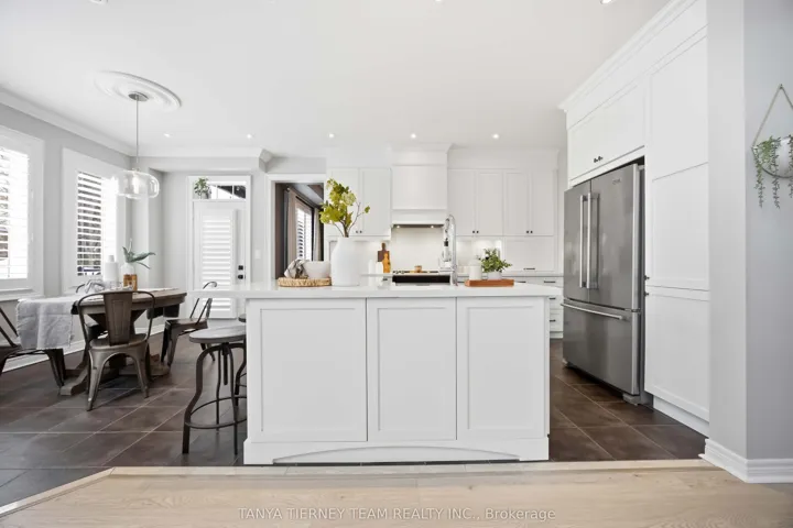 +"PublicRemarks": "Fernbrook built family home backing onto a tranquil ravine setting with inground pool, hot tub & a private backyard oasis! Beautifully upgraded 3+1 bedroom, 4 bath home offering exceptional curb appeal with professionally landscaped front & back gardens. The backyard is designed for entertaining featuring a timber gazebo, large deck, interlocking patio, inground saltwater pool, hot tub & scenic treed ravine views providing ultimate privacy. The inviting foyer welcomes you to a sun filled open concept main floor with extensive crown moulding, wainscoting & california shutters throughout. Convenient main floor office ideal for working from home or study space. Main floor laundry room with direct garage access. Gourmet kitchen showcases Silestone quartz countertops, Raywal cabinetry, ceramic backsplash, stainless steel appliances, pantry with custom pull out shelves & centre island with breakfast bar. Spacious breakfast area offers a garden door walkout to the entertainer's deck with panoramic ravine views. The impressive great room features soaring cathedral ceilings, gas fireplace with custom mantle & elegant detailing - perfect for family gatherings.Upstairs offers 3 generous bedrooms. The primary retreat features a huge walk-in closet & private balcony overlooking the ravine - perfect for morning coffee. Spa inspired 5 piece ensuite includes soaker tub, large glass shower & granite vanity. Additional bedrooms are spacious & bright with well appointed ensuite baths. Partially finished basement includes a 4th bedroom with barn door entry & a bright rec room with oversized windows offering additional living space for growing families. Situated in a highly desirable community just steps to parks, schools, trails & downtown Brooklin shops. A rare opportunity combining luxury finishes, functional family layout & resort style outdoor living in a premium ravine location!"