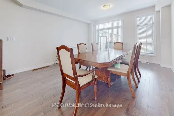+"PublicRemarks": "This gorgeous 1,990 sq. ft. townhome perfectly blends modern design with practicality and functionality, featuring three spacious bedrooms plus a dedicated main-floor home office and four bathrooms. The bright, open-concept layout is enhanced by thousands in upgrades, including elegant hardwood stairs and flooring, 9-foot ceilings on the second level, and a beautiful large kitchen equipped with sleek quartz countertops, stainless steel appliances, and ample cabinetry. Conveniently located within walking distance to a vibrant plaza featuring Tim Hortons, banks, restaurants, a Dollar Tree, and a gym, the home also offers an ideal commuter location with a short drive to both Highway 407 to the north and Highway 401 to the south."