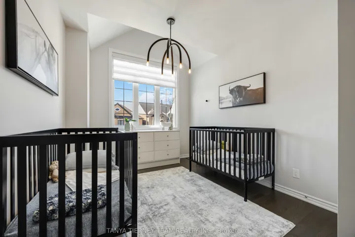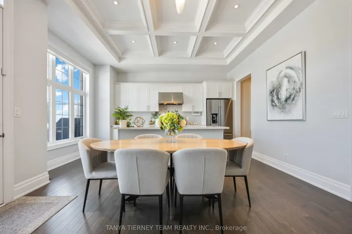 +"PublicRemarks": "Stunning 4 bedroom, 4 bathroom, 5-year-new Minto built family home nestled on a scenic ravine lot in the highly sought-after Ivy Ridge community! From the moment you arrive, pride of ownership is evident with manicured landscaping and gardens, coach lighting, heated garage/workshop with its own electrical panel, and 6 car parking with no sidewalk. Step inside to a sun-filled open concept main floor featuring extensive hardwood flooring including the staircase with wrought iron spindles, soaring 11 ft smooth ceilings, upgraded trim, 8 ft interior doors, and motorized shades with blackout features in all bedrooms. Designed for entertaining, the elegant formal dining room showcases classic wainscoting, while the impressive family room offers a waffle ceiling, pot lighting, Napoleon gas fireplace with custom marble mantle, and a bay window overlooking peaceful ravine views. The gourmet kitchen is beautifully appointed with quartz countertops, centre island with breakfast bar, porcelain herringbone backsplash, Kitchen Aid appliances including a commercial grade gas stove, additional servery sink, and walk-in pantry. Garden door walk-out to a maintenance-free composite deck with under-deck waterproofing, overlooking a private yard complete with composite fencing and custom iron gate access. Upstairs features 9 ft ceilings, 4 generous bedrooms all with ensuites, a walk-in linen closet, and convenient upper level laundry. The primary retreat boasts his and hers walk-in closets and a spa-like 5 piece ensuite with stand alone soaker tub and comfort height marble vanity. To top it all off walk-out basement with oversized windows awaits you. Located steps to the best schools in Durham region, parks, transit, and all major amenities. A rare walk-out ravine-lot opportunity in a premier community!"