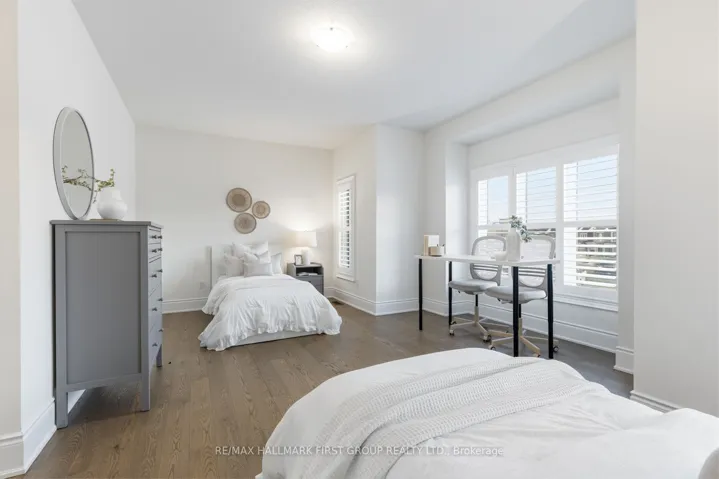+"PublicRemarks": "Beautifully updated executive all-brick and stone home offering refined finishes and a thoughtfully designed layout. Step through the double-door entrance into a welcoming foyer, highlighted by upgraded large-format ceramic tile and a generous walk-in front hall closet. The formal dining room showcases custom trim work and coffered ceilings, seamlessly connecting to the kitchen through a convenient servery, perfect for hosting and entertaining.The open-concept kitchen overlooks the living room, where soaring 9-foot ceilings on both the main and second floors create an impressive sense of space. Hardwood flooring flows throughout the entire home, while a cozy gas fireplace anchors the living area. California shutters throughout provide both elegance and privacy. A main-floor office offers an ideal work-from-home space, and direct garage access through a functional mudroom adds everyday convenience.The modern kitchen features stainless steel appliances (2023), an eat-in area, and a servery designed for effortless entertaining, with a walkout to a large pie-shaped backyard that overlooks the conservation area-an ideal setting for outdoor living and privacy. Upstairs, convenient laundry enhances the home's practical layout. The spacious primary retreat includes a large walk-in closet and a luxurious 5-piece ensuite. Secondary bedrooms are well appointed, with a Jack-and-Jill bathroom and an additional private ensuite. The unfinished basement with cold cellar presents endless potential for customization.Significant updates include furnace, air conditioner, roof, windows, and a 200-amp electrical panel-all completed in 2023. Ideally located backing onto the Heber Down Conservation Area and just minutes from Thermea Spa and Cullen Central Park. Close to shopping, dining, schools, and places of worship, with easy access to Highways 401, 412, and 407."