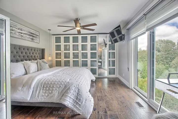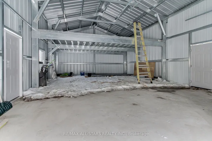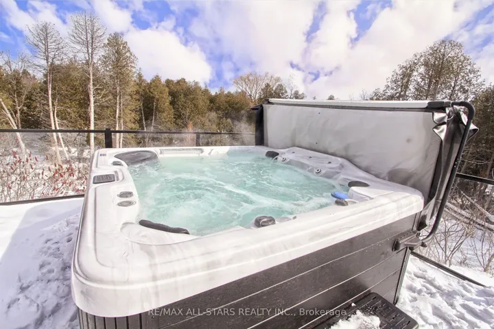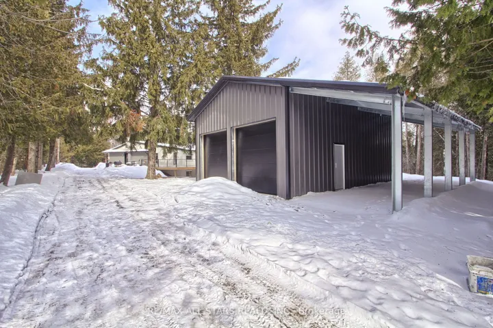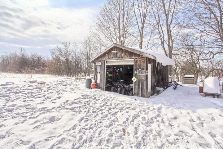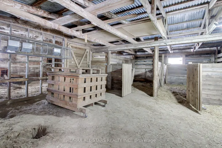 +"PublicRemarks": "Drive thru your gated tree lined driveway to 10 acres of natures beauty- Generous sized 3 bedroom bungalow with a walk out basement. Beautifully designed with an open concept layout and multiple walkouts to a wrap around deck. This north facing home features custom barn door enclosed closets, hardwood thru out, custom window treatments, electric light fixtures, fancified washrooms with a floating vanity and hexagon tile work, live edge b/in cabinets and wood and stone feature walls. Breathtaking views from every window. Renovated kitchen with quartz countertops, seating for 4 at the breakfast bar and overlooking the dining room. Ideal for entertaining. Double sided fireplace!!! Fishing worthy creek on the east side and forest walking trails..Barn with water and electricity is ideal to house horses, donkeys, goats, chickens and sheep. Work shop is the ideal man/handyman cave. New Detached triple car garage 35 x 37 feet with car port.All this only 4 minutes from town, 407, Go Station and amenities. New WIndows, All new electricity running to the barn."
