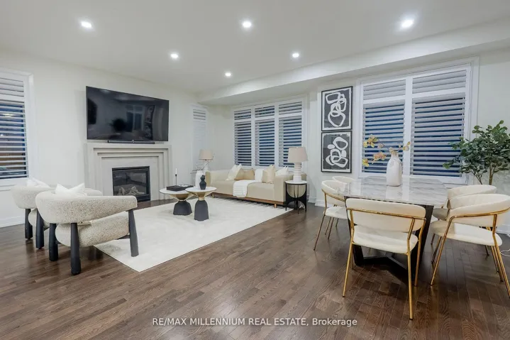 +"PublicRemarks": "Welcome to this stunning 4-bedroom, 4-bathroom residence situated on a premium corner lot with an impressive 57.94 ft frontage, offering unobstructed, breathtaking views. This exceptional home showcases high-end finishes throughout and is designed for both elegance and everyday comfort. The open-concept main floor features soaring ceilings, rich hardwood flooring, and a gas fireplace that anchors the space with warmth and style. The gorgeous eat-in kitchen is a true showpiece, complete with an elegant backsplash, brand new stainless steel appliances, and a bright breakfast area finished with marble flooring. The breakfast area offers direct walkout access to the fully fenced backyard, perfect for entertaining or family enjoyment.Upstairs, the luxurious primary retreat impresses with a spa-like 5-piece ensuite, two closets, including a large walk-in closet, offering ample storage and comfort. Each of the remaining generously sized bedrooms features its own private ensuite, providing convenience and privacy for family and guests alike. Additional highlights include parking for up to 6 vehicles, a double-car garage, and an abundance of natural light thanks to the home's elevated position and corner-lot exposure. Ideally located just 1 minute to Highway 407 and 5 minutes to Costco, major big-box stores, restaurants, and banks. Close to school bus routes, public transit, and only minutes' drive to Ontario Tech University-this home offers an unbeatable combination ofluxury, location, and lifestyle. A rare opportunity to own a refined home with spectacular views, generous frontage, and unmatched accessibility."