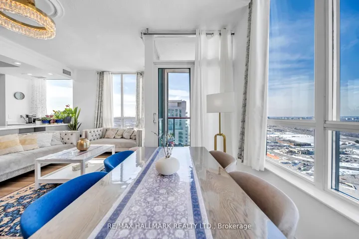+"PublicRemarks": "Fully Renovated Corner Penthouse Completely Reimagined In 2025 With Modern, High-End Finishes Throughout. This Bright High-Floor Corner Residence Offers 2 Spacious Bedrooms Plus A Fully Enclosed Den With Door, Ideal As A Third Bedroom, Nursery, Or Private Home Office. Expansive Windows Fill The Suite With Natural Light And Offer Elevated City Views Including Distant CN Tower And Lake Ontario Sightlines, While A Private Corner Balcony Provides The Perfect Space To Relax And Enjoy The Skyline. The Contemporary Open-Concept Kitchen Features Modern Cabinetry, New Countertops, And Stainless Steel Appliances Including A Quad-Door Refrigerator, Electric Oven, Hood Microwave, And Dishwasher, Seamlessly Connecting To The Living And Dining Areas For Comfortable Living And Entertaining. Both Bathrooms Are Elegantly Renovated With Modern Vanities And LED Mirrors, While Brand-New Flooring, Interior Doors, Updated Wall Finishes, Premium Fixtures, And Modern Window Coverings Complete This Truly Move-In-Ready Home. Additional Features Include A Convenient In-Unit Stacked Washer And Dryer And Two Separate Air Conditioning Systems Providing Enhanced Climate Control And Personalized Comfort. Includes 1 Parking Space And 1 Locker. Located In The Prestigious Monarch Equinox Community With Direct Indoor Access To Scarborough Town Centre, TTC, And GO Transit, Minutes To Highway401 And Close To University Of Toronto Scarborough And Centennial College. Residents Enjoy Resort-Style Amenities Including 24-Hour Concierge, Indoor Pool, Jacuzzi, Fully Equipped Fitness Centre, Home Theatre, Virtual Golf Simulator, Billiards Room, Table Tennis, Card Room, Library, Elegant Party Room, Two Guest Suites, Car Wash Facility, And Bicycle Storage."