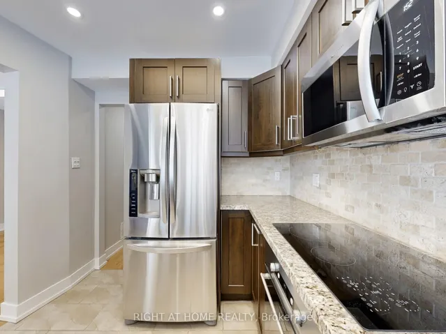 +"PublicRemarks": "Beautifully maintained home in a desirable neighbourhood! Features a large private driveway and convenient garage access into the home. The main floor offers custom tile flooring and a modern updated kitchen with open-concept layout and breakfast area, flowing into a bright living room with hardwood floors. The spacious primary bedroom includes a private balcony and 4-piece ensuite. The finished basement provides additional living space with laminate flooring, pot lights, a wet bar, and office area. Enjoy a large fenced backyard with a generous deck, perfect for relaxing or entertaining. Conveniently located close to schools, shopping, transit, and Hwy 401. Available furnished or unfurnished to suit tenant needs."