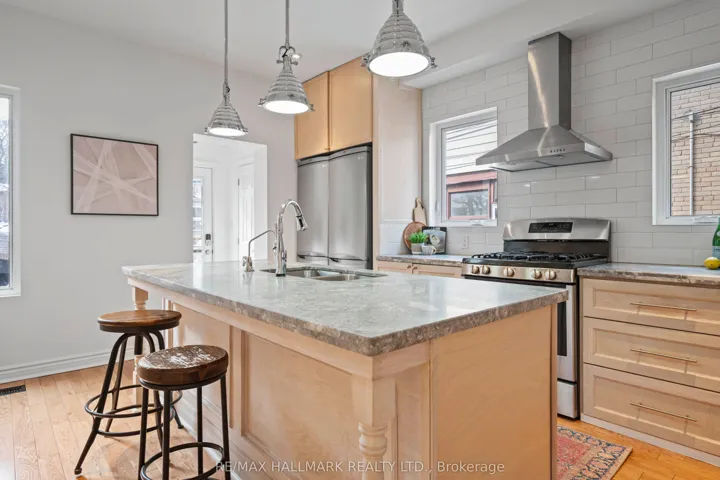 +"PublicRemarks": "This fantastic home was completely renovated in 2015 with a two storey front addition. The addition includes an insulated and heated sunroom that is ideal for a work at home space or a place to unwind and chill. The main level is open concept with hardwood flooring throughout, fireplace in living room, centre island in kitchen, a 2 piece powder room, and walkout to a fabulous professionally landscaped yard that features a large deck, hot tub, and a spacious and functional shed for extra storage. The primary bedroom on the second level, which benefitted from the addition and is very large, has a breathtaking vaulted ceiling, electric fireplace, along with two walk-in closets and a sitting area. This level also has laundry, a skylight and two other generously sized bedrooms - one has a walkout to a balcony that overlooks the backyard. There's a separate entrance to a completely finished basement with a full bathroom and a sauna which is ideal for relaxing in after soaking in the backyard hot tub. This home also has built-in speakers/sound system, instant hot water, high efficiency furnace, central air, shatter proof windows, a cold storage room, Hepa air filter system, Culligan water purifier, and central vacuum. Great Danforth location with Felstead Park just steps away at the end of the street, Monarch Park swimming pool, Monarch Park Collegiate with International Baccalaureate program, bus closeby on Greenwood Avenue, or a short walk to Greenwood subway."