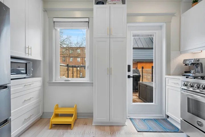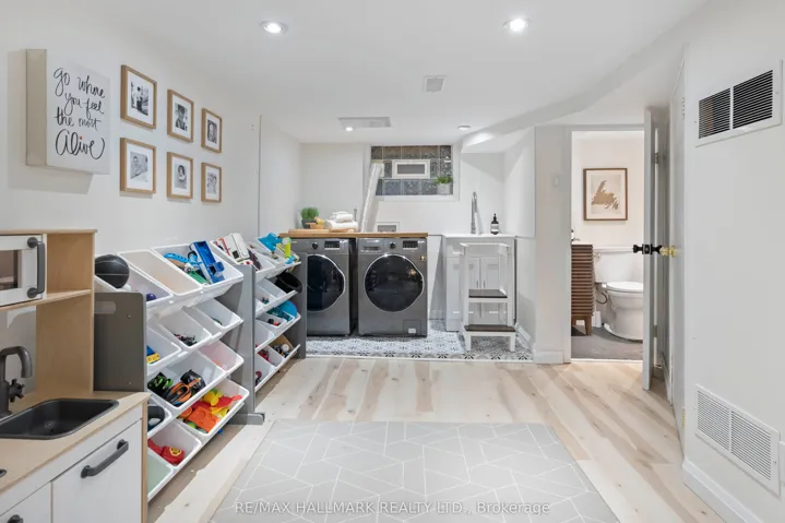 +"PublicRemarks": "This is an incredible opportunity to get a beautifully updated home in "The Pocket", a highly desirable community-oriented Danforth neighbourhood. This wonderful home overlooks the Eastern Commerce Collegiate playing field and features an open concept with refinished hardwood floors (2025), a wonderful newer kitchen with a Chef's Bertazonni gas oven and a walkout to a large deck and spacious professionally fully landscaped yard, with a cool rollup door (installed in 2024) that, when open, allows parking on a stone driveway with EV charger! The large primary bedroom has a huge picture window overlooking the playing field where its southern exposure allows natural sunlight to flood in! The basement is completely finished with a recreation room and 2 piece washroom. The home also features a Hybrid heat pump (combo electric heat pump with high efficiency furnace 2023), Eco windows and doors throughout 2022, Backwater valve 2021, even though the basement is dry. The location of this home is special and it's all about community! See attachment in this listing for links to articles about this fabulous community. Short walk to Donlands Subway station, Phin Park, Greektown, and the great Danforth retail strip of restaurants and shops."