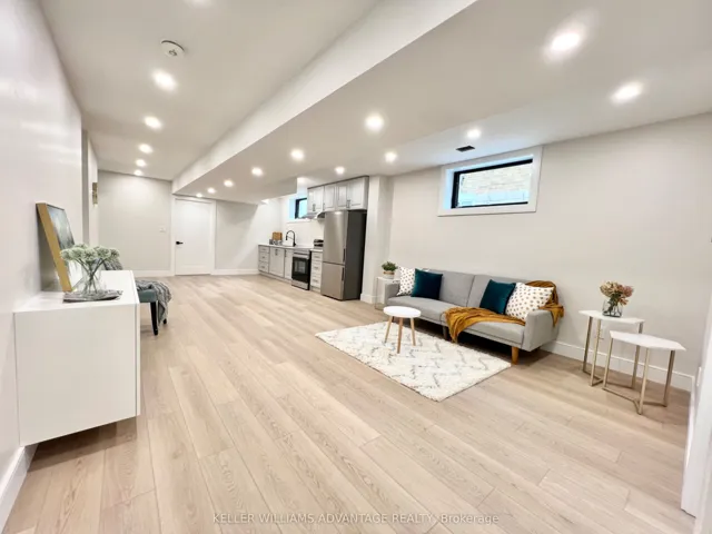 +"PublicRemarks": "Bright and spacious, this beautifully finished lower-level unit features 8-foot ceilings and enhanced soundproofing for added comfort and privacy. Enjoy a large open-concept layout combining the living, dining, and kitchen areas-perfect for modern living. The kitchen is equipped with brand new stainless steel appliances, and the unit offers two generously sized, light-filled bedrooms along with a stylishly designed bathroom.Additional highlights include a private separate entrance, convenient ensuite laundry, and one parking space available upon request. All utilities are included for hassle-free living.Ideally located just a short drive to the Beaches and downtown Toronto, and close to shops, community centres, pools, waterfront trails, and excellent schools."