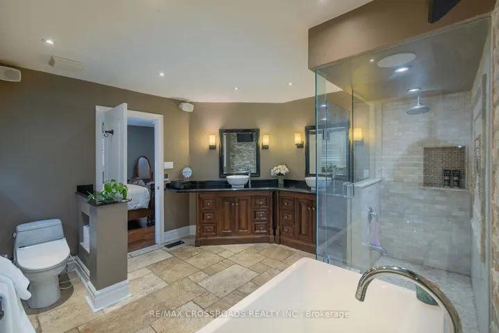 Stunning home nestled in the Exquisite Highbush Neighborhood of Pickering! This Property Boasts 3,267 sq ft of well-appointed living space above ground plus a finished basement. 5 spacious bedrooms upstairs and 3 in the basement as well as a rare 3-car garage, make this a very unique property! The main level showcases hardwood flooring throughout, complemented by spectacular ceramic and travertine tile finishes, as well as a large eat-in kitchen complete with granite countertops; perfect for family living and entertaining! The Magnificent Master ensuite is a true retreat, featuring his and her’s vanities, a walk-in glass shower, a freestanding tub, heated floors, and a built-in stereo system for added luxury! Step outside to your private backyard oasis, designed for both relaxation and entertaining with an inground fibreglass saltwater pool, exterior bar, and a fully equipped BBQ area with built-in fridge! Ideally located just minutes from Rouge National Urban Park and the Toronto Zoo, the 401 and alll the amenities you could wish for that offer endless outdoor recreation and family-friendly attractions! A rare opportunity to own a beautifully upgraded home in a prime location!