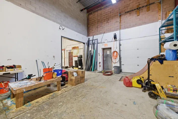 +"PublicRemarks": "Fabulously located at Hwy 7 & 400, industrial condo offers 2,250 SF of space on the main floor, including professionally finished offices with terrazzo floors throughout, 2 washrooms and warehouse. (Mezzanine of 919 SF is additional and is not included in the 2,250 SF) Security system included, A/C in office area. Over-size 12' high x 12' wide drive-in door. Good parking available. Seller does not warrant retrofit status of mezzanine. Fixtures are also available."