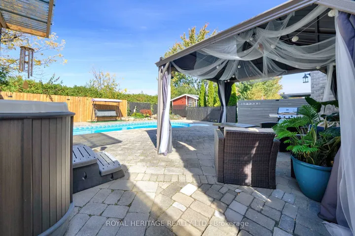 +"PublicRemarks": "Welcome to 46 Lownie Court! Beautifully updated 3+1 bedroom, 4-bath all-brick link home located on a quiet, family-friendly court in desirable Bowmanville, backing onto scenic Guildwood Park for added privacy and peaceful green views. Enjoy exceptional outdoor living with your own private backyard oasis featuring a gas-heated salt-water pool with solar cover, landscaped fully fenced yard, gazebo, BBQ gas line, and space ideal for relaxing or entertaining. Inside, the bright eat-in kitchen overlooks the backyard and offers quartz countertops, farmhouse double sink, stainless steel gas stove with double convection oven, California shutters, and double patio doors leading to the outdoor retreat. The inviting living room with built-ins and convenient main floor powder room add comfort and functionality. Upstairs offers three generous bedrooms and a bright 4-pc bath. The spacious primary suite features a 4-pc ensuite with glass shower, double quartz vanity, and convenient in-suite laundry. Triple-pane windows in the primary bedroom and laundry area enhance comfort and energy efficiency. The finished lower level with separate entrance through the garage provides excellent flexibility with a living area, kitchenette, and 3-pc bath - ideal for extended family or guests. Also includes a versatile room currently used as a bedroom (no egress window), perfect for a home office or hobby space. Close to parks, Soper Creek trails, schools, shopping, recreation, and minutes to Hwy 401 & 407. A move-in ready home offering privacy, lifestyle, and functional living in a sought-after neighbourhood. Pictures and video are from a previous listing."