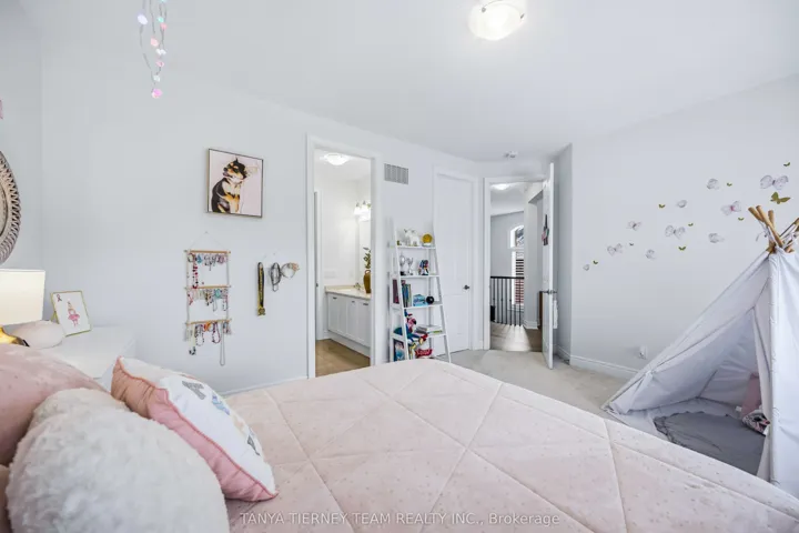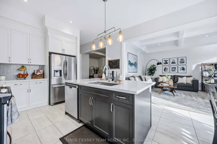 +"PublicRemarks": "Stunning Heathwood-built 'Aspendale' model offering 3,435 sqft of upgraded living space including the builder finished basement. Rich oak hardwood flooring flows throughout the main and second floors, including the staircase accented with wrought iron spindles, while 10-ft ceilings, california shutters and pot lighting enhance the elegant, open feel of the home. The formal dining room with elegant coffered ceiling is ready for Holiday entertaining. Impressive great room showcases a stunning waffle ceiling and a gas fireplace with custom mantle for cozy Hallmark Movie nights. Gourmet kitchen boasts quartz counters, a large centre island with breakfast bar and pendant lighting, stainless steel appliances including upgraded chimney hood, custom subway tile backsplash, large walk-in pantry and ample cabinetry. The bright breakfast area features sliding glass doors leading to a deck and a fully fenced backyard, complete with a large garden shed. Upper level offers 4 generous bedrooms with great closet space, all with ensuite access. The primary bedroom includes a 5-piece spa-inspired ensuite with soaker tub and glass shower. Convenient 2nd-floor laundry with cabinetry plus an open-concept den perfect for home office or study. The fully finished basement features 9-ft ceilings, pot lights, great windows, a 4-piece bathroom, and abundant storage, offering plenty of additional living space. Ideally located just mins to Heber Down Conservation Area & the new un-named public school schedule to open Sept 2026. Minutes to Hwy 412, 407 & 401, this home offers the perfect blend of luxury, comfort, and convenience!"