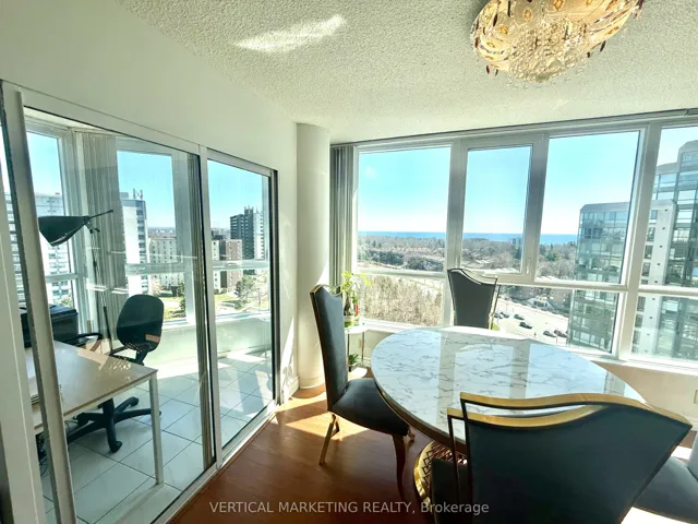 +"PublicRemarks": "This stunning and bright 2+1 bedroom (solarium/den), 2-bathroom condo in a highly sought-after Tridel building offers approximately 1200 sq ft of spacious open-concept living with a sunny south/east corner exposure and unobstructed million-dollar views of Lake Ontario from the primary and second bedrooms. The unit features a generous living and dining area with an enclosed solarium, all filled with natural light, and is conveniently located near Scarborough Town Centre, multiple shopping complexes, parks, and waterfront trails, with 24-hour TTC service and a direct bus to Kennedy Station. Utilities are included, and recent upgrades include a brand-new washer/dryer, stove, hood range, and three elegant chandeliers. The condo comes with one underground parking space, one spacious locker, and access to excellent amenities such as 24-hour concierge/security, two indoor pools, gym, squash court, large party room, indoor walking areas, and ample underground visitor parking. Pride of ownership and strong building management make this a standout opportunity, with a Status Certificate available upon request-don't miss this exceptional unit."