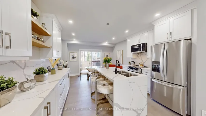 +"PublicRemarks": "Located in the vibrant Greenwood-Coxwell pocket near Danforth Avenue, this newly built home offers a thoughtful blend of modern design and everyday comfort. With close to 2,000 square feet of living space, it features 2 spacious bedrooms with wall unit closet organizers and 4 well-appointed bathrooms, making it ideal for those who value both style and functionality. The home showcases high-end finishes throughout, with careful attention to detail in every room. The exterior stands out with reclaimed wood at the front, adding warmth and character, while the rear features a sleek stucco finish for a clean, contemporary look. Inside, the layout is bright and open, designed for both living and entertaining. The dining area is a true focal point, featuring a dramatic two-story ceiling with 2 skylights that fills the space with natural light. A modern glass-panel stair railing enhances the open feel, seamlessly connecting the levels with a sleek, contemporary touch. The kitchen is designed for both style and practicality, boasting a quartz countertop with matching backsplash and a striking waterfall island at the center. Cabinets and counter space line both sides, providing ample storage and workspace for all your culinary needs. One of the high lights is the two-level deck, accessible from both the primary bedroom and the kitchen, offering a private outdoor space that overlooks the backyard-perfect for relaxing or entertaining. Situated in a friendly, community-oriented neighborhood, you'll enjoy easy access to shops, cafes, parks, and transit along the Danforth, steps to Greenwood TTC. While there is no dedicated parking, street parking permits are available through the city. This is a rare opportunity to own a brand new modern home in one of Toronto's most connected and welcoming east-end communities."