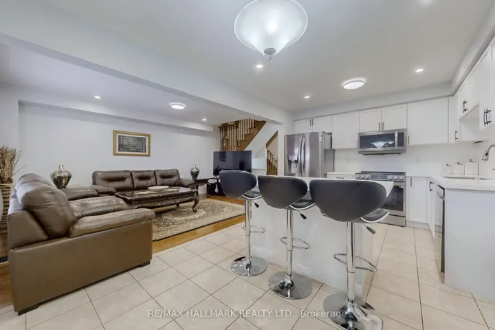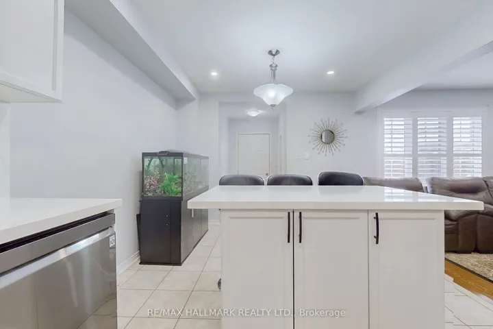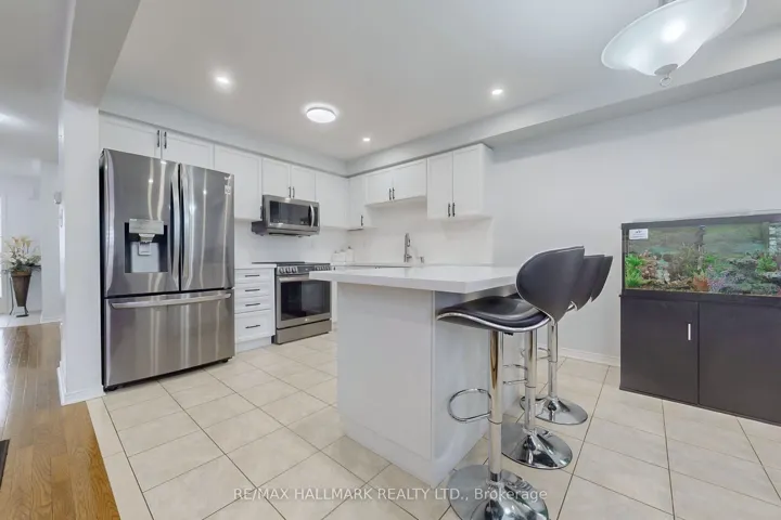 +"PublicRemarks": "Welcome to this bright and beautifully upgraded 3-bedroom townhome featuring a finished basement and a functional open-concept layout. The main floor offers hardwood flooring, an elegant oak staircase, and a modern kitchen complete with quartz countertops, a large center island, stainless steel appliances, and ceramic flooring-perfect for everyday living and entertaining.Upstairs features spacious bedrooms with laminate flooring, while the finished basement includes a large recreation room, office space, and a 4-piece bathroom.Enjoy additional upgrades such as interlocking in the backyard and driveway, pot lights, upgraded light fixtures, and California shutters throughout. Conveniently located in Northeast Ajax, close to schools, parks, shopping, and with quick access to Highways 401, 407, and 412."