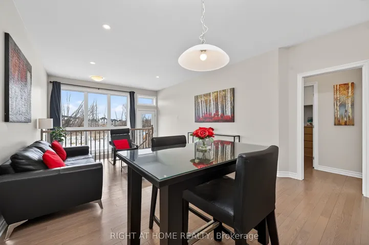 +"PublicRemarks": "This beautifully maintained 2-bedroom, 2-bathroom townhome in Barrhaven offers a space that simply feels like home from the moment you walk in. Natural light pours into the open-concept living and dining area, enhanced by upgraded pot lights, creating a warm and welcoming setting where mornings begin easily and evenings unwind comfortably. It is the kind of space that adapts to your day, whether you are hosting friends or enjoying a quiet night in. The kitchen has been thoughtfully upgraded with additional drawer storage, making everyday living just a little more seamless. Upstairs, the primary bedroom is bright, calm, and well-proportioned, with convenient access to the main bathroom. The second bedroom has been elevated with classic wainscotting, adding character and a sense of finish that sets it apart. Even the practical spaces have been carefully considered. The stacked washer and dryer setup opens up valuable workspace in the laundry area, a small detail that makes a meaningful difference. The garage features an epoxy-finished floor, along with added storage and a functional change area, perfect for keeping life organized through every season. Lovingly cared for and truly move-in ready, this is a home where everything has been done with intention. It offers not just comfort and function, but a place to settle in, feel at ease, and make your own. A standout opportunity in one of Barrhaven's most desirable communities."
