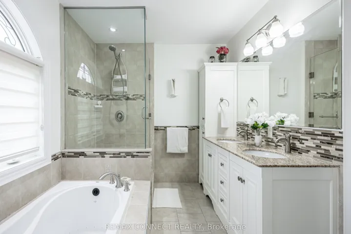 +"PublicRemarks": "Gorgeous curb appeal in this fully detached two-storey home in much sought after Ridgehill Manor---Brampton's Best Kept Secret--mature, executive, established neighbourhood adjacent to 34 acres of Conservation/Park with Fletcher's Creek running through it. Featuring a completely private backyard with extra tall hedging truly makes this the perfect property! Beautiful main level floor plan featuring a centre hall plan with large living and dining room open concept design with upgraded dark tone hardwood flooring, crown molding, extra large picture window overlooking backyard. Cozy main floor family room/den with upgraded hardwood flooring and bright windows. Updated eat-in kitchen with ample white cabinetry, dark contrasting counters, double sinks/window view to yard, mirrored backsplash, deep pot drawers, large picture window in eat-in breakfast area/remote controlled California shutters, cook top, built-in oven, dishwasher/washer, gas dryer, walk-out to side yard. Four spacious bedrooms, semi-ensuite bathroom. Huge recreation room with dry bar & upgraded broadloom, huge laundry room/storage. Central air, high efficiency gas furnace, electric garage door openers, true double car garage (two doors), garden service door, double width driveway accommodating up to 4 cars. Walking to Downtown, public transit, primary/secondary schools. Shows beautiful!"