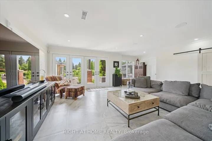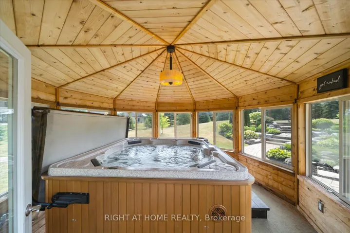 +"PublicRemarks": "Welcome to this spectacular detached custom-built bungalow, boasting over 5,000 sq ft of exquisitely finished living space in Port Perry's prestigious Castle Harbour community. Set on a premium 2+ acre lot with coveted southern exposure, this elegant estate perfectly blends luxury, serenity, and convenience. Just minutes from charming downtown Port Perry-with its fine dining, boutique shopping, and marina-and only 20 minutes from Hwy 407, you can enjoy both tranquility and easy access to the city. This 4+1 bedroom, 5-bathroom executive home features a fully renovated kitchen (2025) with custom cabinetry, a large quartz centre island, new hardwood floors, and custom porcelain tiles in the hallway (2025). The upgraded laundry room (2025) adds both function and style. Architectural details throughout include coffered ceilings, crown moulding, rich hardwood floors, and a soaring cathedral ceiling in the Great Room. The finished walkout basement (2024-2025) is designed for entertaining, complete with heated porcelain floors, a wine cellar, and a custom bar. The lower level also offers a self-contained apartment with its own entrance, full kitchen, living room, laundry, bathroom, and private patio-ideal for guests or multigenerational living. Step outside to your private oasis: multiple walkouts lead to an expansive composite deck, a wraparound covered porch with views of Lake Scugog, lush gardens, mature trees, a serene pond, a hot tub in a gazebo, a fenced in-ground pool, and even your own golf chipping green. Additional highlights include a durable metal roof, oversized sun-filled principal rooms, new 3-car garage doors, and parking for up to 30 vehicles. This extraordinary estate offers the ultimate in elegance, privacy, and lifestyle-truly a one-of-a-kind home."