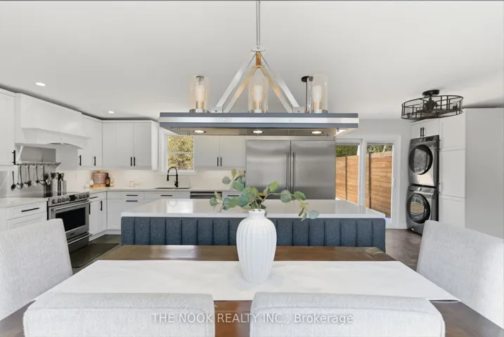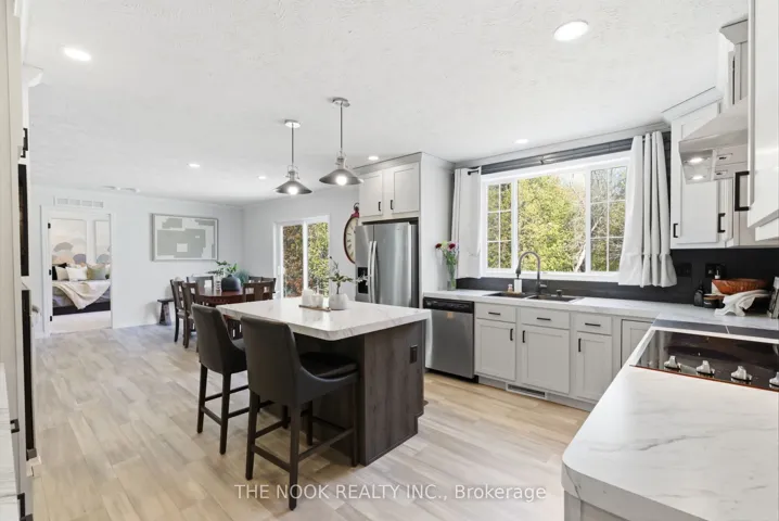 +"PublicRemarks": "Rare opportunity to own a unique property offering two full homes set on a picturesque 1.4-acre lot-ideal for multi-generational living, rental income, or a private retreat surrounded by peaceful green space. The main home features a beautifully updated kitchen designed for both everyday living and entertaining, complete with a long centre island, walk-in pantry, custom bench seating and walkout to an oversized deck-perfect for hosting or unwinding in a serene setting. The open-concept layout flows seamlessly into the inviting living room, highlighted by a stunning feature wall with a built-in electric fireplace. Adjacent to the living room is an office filled with an abundance of natural light and a walk-out to the yard. This home offers 3 bedrooms and 3 bathrooms, including a spacious primary retreat with a spa-inspired ensuite showcasing a glass walk-in shower. Two additional upstairs bedrooms each feature their own versatile sitting areas-perfect for a reading nook, workspace, or personal lounge. The additional dwelling unit, approximately 1,700 sq ft Bungalow , offers 3 bedrooms and 2 bathrooms, providing excellent flexibility for extended family or income potential. Its bright kitchen, complete with stainless steel appliances, overlooks the expansive backyard, while the cozy living room features its own statement wall with a built-in electric fireplace. The primary bedroom includes a private ensuite and a generous walk-in closet, creating a comfortable and functional living space. This exceptional property blends space, privacy, and versatility in a truly beautiful setting. The expansive grounds are a true highlight, featuring mature trees, lush greenery, and plenty of open space to enjoy outdoor living, garden, or simply take in the beauty and privacy of this serene natural setting."