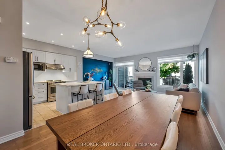 +"PublicRemarks": "Welcome Home To This Beautiful Gem, Ideally Located On A Family-Friendly Street And Backing Onto A Serene Ravine. The Main Floor Features Hardwood Flooring Throughout, With A Bright Living Room Complete With Pot Lights. The Dining Area Offers A Cozy Corner Gas Fireplace And A Large Window Overlooking The Backyard, Seamlessly Connected To A Bright, White Eat-In Kitchen With A Walkout To The Deck, Perfect For Everyday Living And Entertaining. Upstairs, You'll Find Three Spacious Bedrooms, All With Large Windows. The Primary Bedroom Includes A Feature Wall, Walk-In Closet And A Generous 4-Piece Ensuite, While A 4-Piece Main Bathroom Adds Convenience For The Rest Of The Household. The Finished Basement Provides Additional Living Space With Laminate Flooring Throughout, A Beautiful TV Feature Wall, And A Bar Area, Ideal For Entertaining. It Also Features A Dedicated Laundry Room, A Large Storage Closet, And Plenty Of Additional Storage Space Under The Stairs. Step Outside To A Private Backyard Retreat Featuring A New Two-Level Deck And Backing Onto A Peaceful Ravine, An Ideal Setting For Relaxing Or Hosting Guests. Located Close To Shopping, Schools, Transit & Restaurants, This Freehold Townhome Offers Great Space, A Family-Friendly Setting, And A Convenient Location, The Perfect Place To Call Home! EXTRAS: Freshly Painted (2026), Backyard 2 Level Deck (2025), Dishwasher (2025), Pot Lights (Main Floor) (2022), Sink In Powder Room (2022), Kitchen Sink & Faucet (2022)."