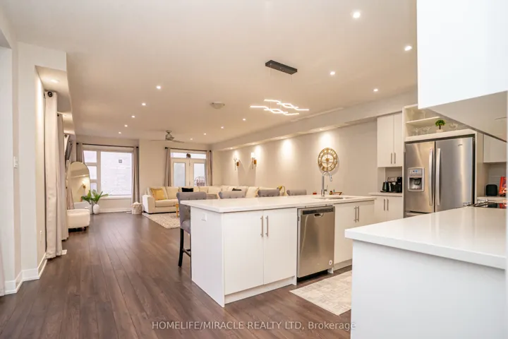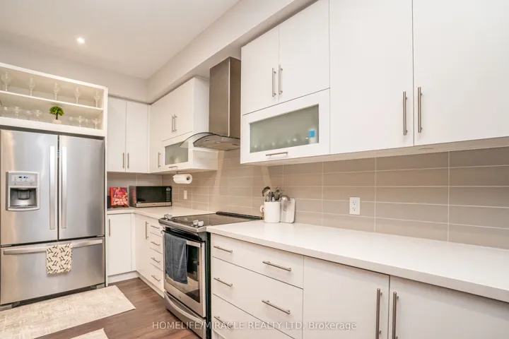 +"PublicRemarks": "Welcome to this stunning, modern end-unit Condo Townhouse a true showpiece offering over 2,250 sf of luxurious open concept living space, with more than $120K in premium upgrades throughout. This exceptional 2 Story home features 3 spacious bedrooms, a versatile media/entertainment room and a beautifully finished in-law suite complete with its own Kitchen, Bedroom, Washroom, Living with Dining areas and a private laundry ideal for extended family or excellent income potential.The main level showcases gleaming laminate flooring, a chef inspired Kitchen with high end Stainless Steel appliances, elegant backsplash and a custom island perfect for entertaining. Large windows fill the space with lots of natural light, complemented by pot lights and an elegant and stylish electric fireplace.Walk out to a spectacular two-tier deck perfect for outdoor entertaining and relaxing.Upstairs you'll find three generously sized bedrooms, including a luxurious primary suite with a spa-like ensuite. A Flexible media room offers the ideal space for a home office or additional lounge. Enjoy the convenience of second floor laundry.This beautiful corner unit is located in a highly desirable neighborhood and features smooth ceilings throughout main floor, with convenient visitor parking right at your doorstep. Ideally situated close to Highways 401, 407and 412 as well as the Go Station, shopping, schools, public transit, and scenic trails offering both comfort and convenience with everything you need just minute away."
