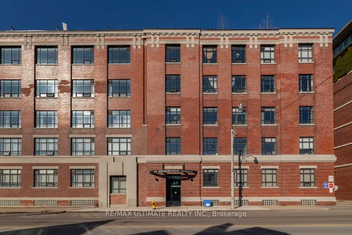 +"PublicRemarks": "*Broadview Lofts* Spectacular One Bedroom Loft w/ 2nd Floor Loft Mezzanine. Located in the Iconic Broadview Lofts. This Penthouse Epitomizes the Ultimate of Loft Living. Open Concept, Approx 1200 Sq Ft, 2 Levels, 19ft Ceiling, Wall-to-Wall, Floor-to-Ceiling Windows. Take The Staircase And Enjoy More Wow Of This Property. Walkout from Living Area To Massive 32' X 12 ' Balcony w/ West View of Toronto City. Bbq Ok. Location Is Excellent in the heart of the quaint Village Of Leslieville. Close To All Shopping & Amenities, Restaurants, Cafes On Queen St E. Grocery Nearby, Ez Access To Highways, Downtown, Transit, Toronto's Beaches Community. "Other" is Terrace."