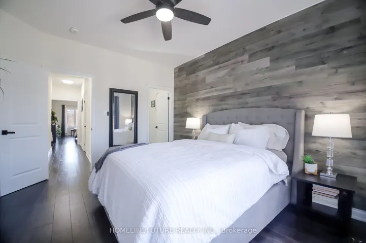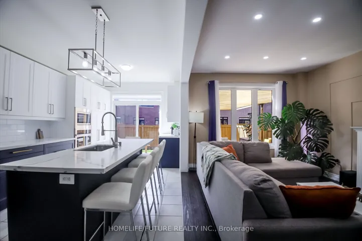 +"PublicRemarks": "Beautiful Upgraded 4-Bedroom, 4-Washroom Home Offering Approx. 2,400 Sq. Ft. Features A Second Bedroom With 4-Piece Ensuite, Custom Kitchen With Extended Island, Mini Bar, And Extra Counter Space. Elegant Fully Raised Arch Detail Enhances The Interior Design. Main Floor Hardwood Flooring, 2nd Fl With Laminated Flooring. 2nd Floor Laundry, And 9-Ft Ceilings On Main And Second Floors. Smart Home With Upgraded Lighting, Smart Lock, And Thermostat. Roughed-In Security And Central Vacuum. Stone And Brick Exterior, No Sidewalk, And 2-Car Driveway. Fully Fenced Backyard With Professionally Built Deck And Lighting. Over $$$ In Upgrades. Close To Shopping, New Schools, Highways, GO Transit, And Heber Down Conservation Area.**** Don't Miss It ****"