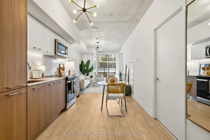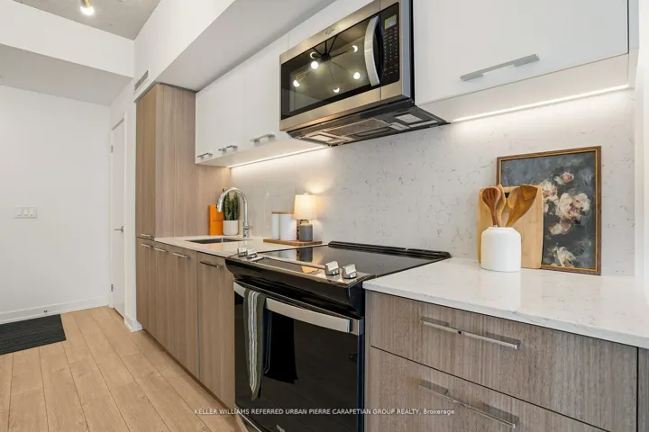 +"PublicRemarks": "Not your cookie-cutter 1-bedroom. This sun-drenched Riverside Square suite offers over 500 sq ft of calm, airy living space with a layout that actually makes sense.No wasted space, a European kitchen, hidden appliances, light quartz counters, and floor-to-ceiling windows. You'll love the airy vibe and a living area that is significantly larger than most in the building.The primary suite is a true retreat and can accommodate a king-size bed. This suite features the building's best finish package, with lighting and drapes included.Bright and spacious, but you'll especially enjoy the sprawling balcony that spans the width of the condo. It features a rare gas BBQ hookup and we're including the BBQ (in great shape!) so you can entertain or relax from day one. Excellent location with the Queen Streetcar at your doorstep. Get Downtown in 15 minutes, bike to Union in 17, or hit the DVP in 1 minute. Live in Toronto's ever-vibrant Downtown East with the best shopping, cafes, and restaurants of Queen East just a 5-minute stroll away. Riverside Square features amazing amenities, including a gym and a rooftop pool with panoramic CN Tower and skyline views."