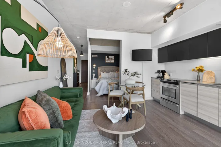 +"PublicRemarks": "Well-designed one-bedroom suite at The Carlaw, featuring excellent finishes and abundant natural light throughout. Polished concrete ceilings create a true loft-style feel, complemented by a modern open-concept living, dining, and kitchen space with integrated appliances. The spacious bedroom offers a large closet, providing both comfort and functionality. Step onto the oversized balcony complete with a BBQ gas line-perfect for entertaining or relaxing outdoors. Enjoy fantastic building amenities including a party room, fully equipped gym, theatre, visitor parking, and guest suites. Ideally located just steps to Queen Street East, the Danforth, transit, the lake, and the Beaches-offering the best of vibrant city living right at your door step. A long-term parking spot is also available for rent at $150/month, providing added convenience in this sought-after neighbourhood."