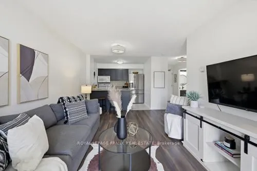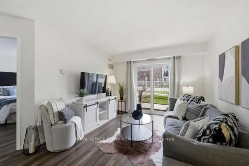 +"PublicRemarks": "Welcome to this sun-drenched, 626-square-foot sanctuary where modern convenience meets effortless urban living. Situated on the main floor, this unit is bathed in natural light throughout the day, creating a warm and inviting atmosphere. The standout feature of this home is the private walk-out to a large patio with direct street access, providing a seamless transition for your daily routine. Whether you are unloading groceries or heading out for a stroll, you can skip the lobby entirely, enjoying a level of accessibility that is truly rare in condo living. The interior layout is both spacious and functional, headlined by a primary bedroom that offers a peaceful retreat and a walk-in closet. Storage is never an issue here, as the unit is thoughtfully equipped with a large pantry cupboard, a dedicated front hall closet, and the essential convenience of in-suite laundry. Every inch of the floor plan has been optimized to ensure you have plenty of room to breathe while keeping your life organized and clutter-free. Beyond the unit, the building offers amenities including a gym, a quiet library, a party room for entertaining, and an outdoor playground. Located in a prime neighborhood, you are just steps away from local schools, shopping, and transit, and only minutes from the 401 for an easy commute."