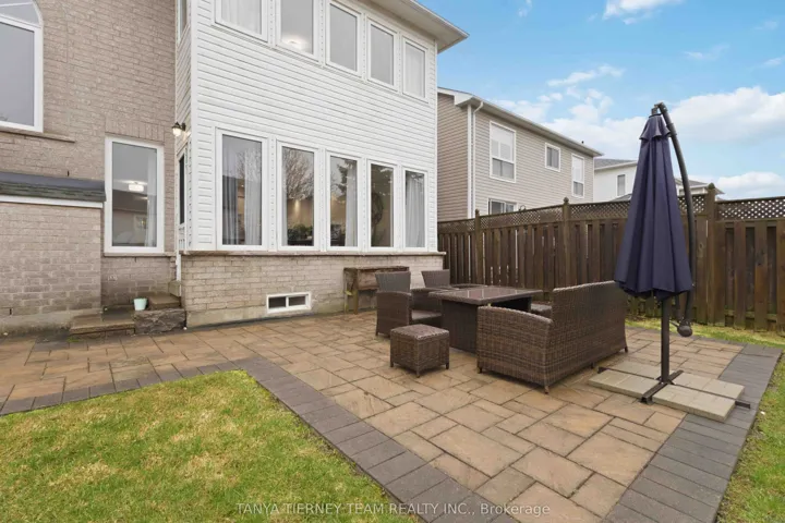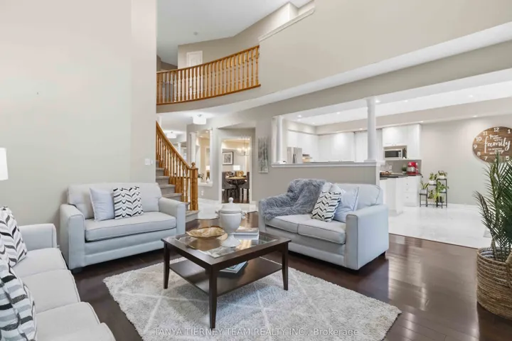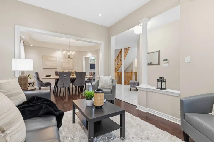 +"PublicRemarks": "Welcome to this stunning Mc Quay model offering over 4+1 bedrooms in a beautifully designed family home, featuring exceptional curb appeal with an interlocking walkway and charming covered front porch. Step inside to an inviting open concept layout showcasing 9ft ceilings, extensive hardwood flooring, pot lighting, and elegant formal living and dining rooms highlighted by a coffered ceiling. The impressive family room is the heart of the home, featuring soaring cathedral ceilings, a cozy gas fireplace, and a striking palladium window overlooking the backyard. The gourmet kitchen is a chef's dream, complete with upgraded ceramic flooring, quartz countertops, a stylish subway tile backsplash, centre island, and stainless steel appliances. The bright breakfast area is surrounded by large windows and offers a walk-out to the beautifully landscaped, fully fenced backyard with an interlocking patio - perfect for entertaining. Convenience meets function with a main floor laundry room equipped with cabinetry. Upstairs, you'll find four spacious bedrooms, including a luxurious primary retreat featuring a walk-in closet, additional double closet, and a spa-inspired 5-piece ensuite with double vanity and a relaxing corner soaker tub. One bedroom features a semi-ensuite, while another boasts a vaulted ceiling and private balcony overlooking the front gardens. The finished basement expands your living space with an additional bedroom complete with a 3-piece ensuite and quartz vanity, a large recreation room, and plenty of storage. Ideally located just steps to schools, parks, and the charming shops of downtown Brooklin, with convenient access to transit and Highways 407/412 - perfect for commuters!"