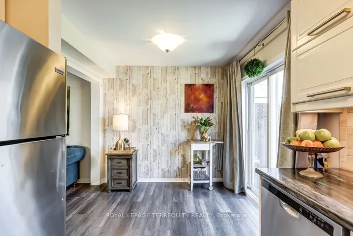 +"PublicRemarks": "Sleek, stylish, and sun-filled, this seriously well-finished freehold townhouse in Toronto's coveted Richview neighbourhood delivers both polish and practicality. This home blends clean contemporary design with warm, character-rich details, including premium 7-inch-wide hand-scraped white oak floors, matching oak stairs, and a reclaimed century-old barn beam above the fireplace mantle that adds warmth and character. The main floor features 9-foot ceilings and an elegant living space with sleek built-in cabinetry, textured feature walls, and smart motorized blinds throughout the home. The kitchen is both functional and refined, complete with quartz counters with a waterfall edge, top-of-the-line appliances including a 6-burner gas stove, and a generous walk-in pantry. The primary bedroom offers a private ensuite. The ground-level garage, finished with epoxy resin floors, is currently set up as the ultimate home gym and offers flexibility beyond parking alone. High ceilings and a storage loft add function inside, while an additional surface parking space provides flexibility for a second vehicle or guests. Outdoor living is equally appealing, with a backyard, two balconies, and a rooftop terrace made for summer evenings. A modern HVAC system and wastewater heat recovery system enhance energy efficiency and future-ready appeal. Set in a family-friendly pocket surrounded by parks and walking trails, just steps from Richview and Silver Creek parks and minutes from the airport and major highways, this home pairs upscale finishes with everyday functionality. The turnkey freehold townhouse you've been looking for, no maintenance fees - simply move in and enjoy."