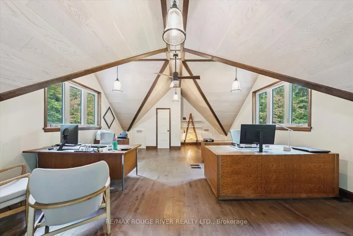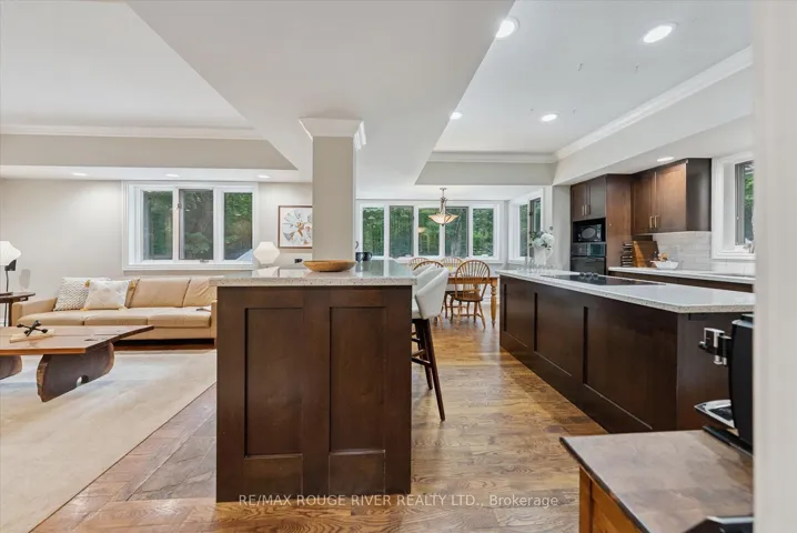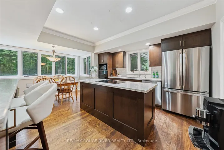 +"PublicRemarks": "An exciting opportunity to own a custom-built, energy-efficient home nestled on a secluded 11-acre lot. This property offers the perfect blend of privacy, comfort, and sustainability, surrounded by mature trees. Inside, you'll find a beautifully updated kitchen with a walkout to a spacious deck, perfect for entertaining or enjoying quiet mornings surrounded by nature. The home's timeless character is enhanced by hardwood floors throughout, crown moldings, French pocket doors, and upgraded trim. You can also cozy up beside several of the home's fireplaces. One of the standout features? A show-stopping primary bathroom that brings luxury and relaxation to a whole new level. This home also features many custom-built-ins, an LED pot lighting system, and a versatile heated loft above the garage with a bathroom. This space is currently used as a home office, but it could easily be transformed into a studio or guest suite. Additional features include a geothermal furnace, offering highly efficient, eco-friendly heating and cooling with significantly reduced utility costs year-round. The property also includes 1.3 km of groomed trails that wind through the woods, perfect for soaking in the natural beauty that surrounds you. And if you've ever dreamed of tapping your own trees, this property offers the opportunity to harvest your own maple syrup, with an average yield of about 45 litres per year. This is a rare opportunity to own a peaceful, energy-conscious home while still having easy access to modern comforts."