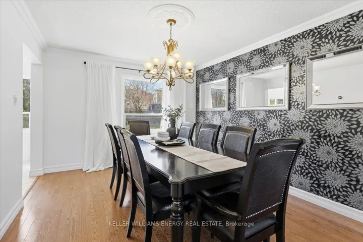 +"PublicRemarks": "Welcome to this beautifully maintained family home in one of Ajax's most sought-after neighbourhoods.Offering approximately 2,400SF of well-designed living space, this 4-bedroom, 2.5-bathroom home sits on an impressive pie-shaped lot-one of the largest in the area-providing exceptional outdoor space and privacy.From the moment you walk in, the bright two-storey foyer sets the tone. The main floor offers a functional, family-friendly layout with spacious, sun-filled principal rooms, including a formal living and dining area with oversized windows and crown moulding-perfect for entertaining or hosting family gatherings.The kitchen is both stylish and practical, featuring granite countertops, stainless steel appliances, ample cabinetry, and a large breakfast bar. It opens seamlessly to the backyard with a walk-out, making indoor-outdoor living and entertaining effortless. The adjoining family room is warm and inviting, complete with a fireplace and pot lights-an ideal space to relax at the end of the day. A convenient main floor powder room and laundry room with direct garage access add to the home's everyday functionality.Upstairs, you'll find four generously sized bedrooms, including a spacious primary retreat with hardwood flooring, a walk-in closet, and a private ensuite. The additional bathrooms are thoughtfully finished with solid wood vanities and granite countertops.The partially finished basement offers excellent potential, with insulated exterior walls and a flexible layout ready for your personal touch-whether that's a rec room, home office, gym, or in-law suite.Step outside to your oversized, private backyard featuring a large patio and expansive green space-perfect for summer entertaining, kids, pets, or simply enjoying the outdoors.Located in a quiet, family-friendly neighbourhood close to top-rated schools, parks, transit, shopping, and all amenities, this is a rare opportunity to own a well-cared-for home on a premium lot in an established community."