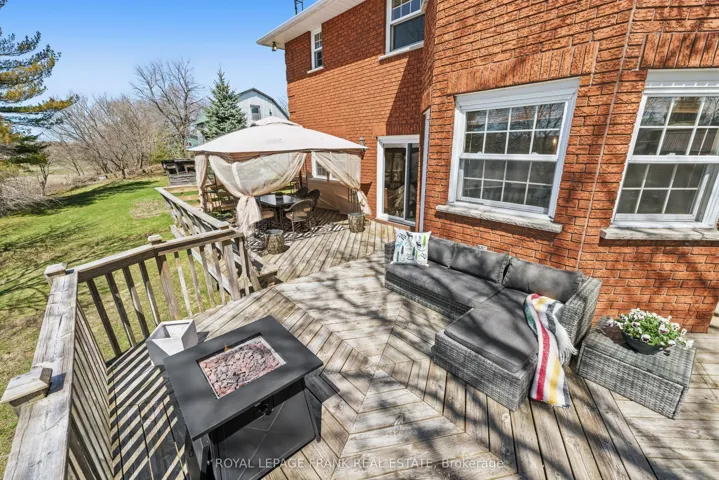 +"PublicRemarks": "Set on a beautifully private 0.757-acre lot in Greenbank, this custom-built, all-brick home offers over 2,800 sq ft above grade and the perfect balance of peaceful country living with convenience-just minutes to Port Perry and Uxbridge. Tucked well back from the road and surrounded by mature trees with no rear neighbours, this meticulously maintained, original-owner home showcases pride of ownership at every turn. A long driveway with parking for 12+vehicles, an oversized double garage, and a large shed with overhead door and metal roof provide exceptional functionality. The expansive back deck is ideal for entertaining while enjoying stunning, unobstructed views. Inside, the spacious main level is thoughtfully designed for both everyday living and hosting. The bright kitchen and breakfast area feature large windows overlooking the backyard, while the living room boasts hardwood floors, a walkout to the deck, and a striking wall-to-wall stone wood-burning fireplace crafted from stones sourced from the original barn on the property. A separate family room with fireplace and pot lights, a large dining room, and a dedicated main floor office add versatility and comfort. A practical mudroom connects the garage to the home and leads to the laundry room with direct access to the backyard. Upstairs, you'll find 4 generously sized bedrooms, including a massive primary retreat with a sitting area, walk-in closet, and a beautifully updated 5-piece ensuite complete with glass shower and standalone tub. The unfinished walkout basement offers incredible potential with high ceilings, a bathroom rough-in, and a rough-in for a future fireplace. Numerous tasteful updates throughout-including bathrooms, flooring, stairs, lighting, roof, and more-enhance this already exceptional home."