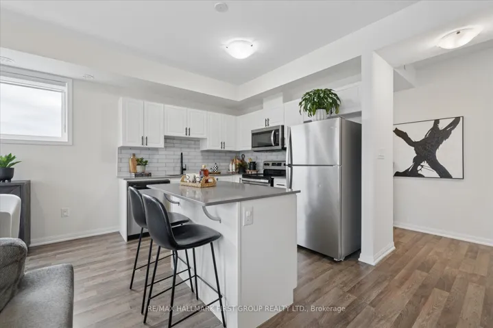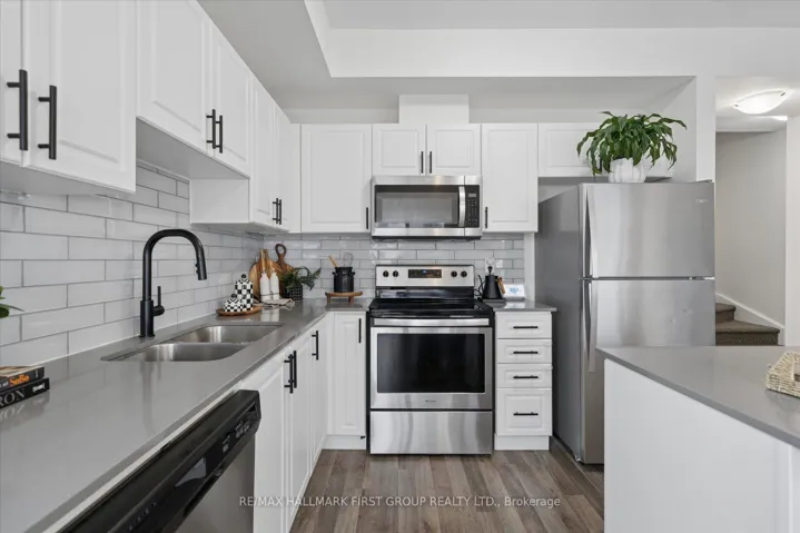 +"PublicRemarks": "Welcome home to this outstanding 2 bedroom, 3 bathroom condo townhome located in the Woodlands neighbourhood of Pickering; just steps away from shopping, restaurants, transit, parks and schools! This spacious corner unit offers stunning southwest views from a huge roof top terrace; a perfect space for entertaining family and friends! The main floor features a bright open concept layout with a combined living/dinning area with laminate flooring and a walk out leading to the balcony. The Kitchen features gorgeous quartz countertops, an island with breakfast bar, and stainless steel appliances. On the second level you'll find a large primary bedroom with a 3pc ensuite and his/hers closets. Also on the second level you have a good size 2nd bedroom and a 4pc bathroom. This unit has one underground parking space, ensuite laundry, and central air."