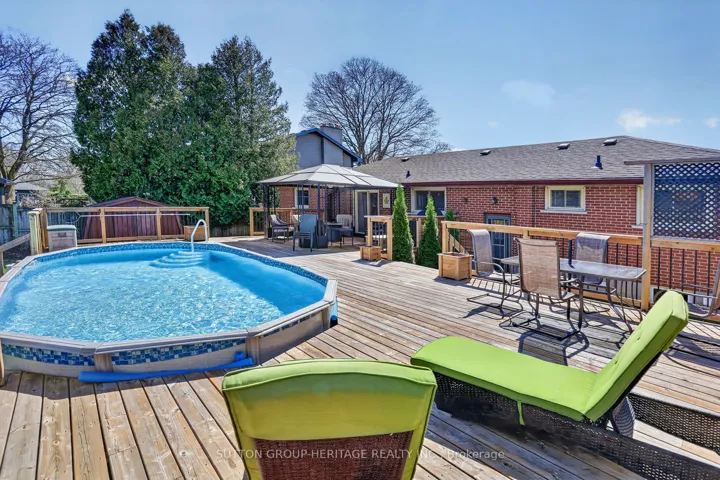 +"PublicRemarks": "Welcome to 'The Glens' One of Oshawa's Most Sought After Neighbourhoods! This Gorgeous 3 Bedroom Bungalow has been Beautifully Renovated and Updated. If You are Looking to Enjoy your Summers Lounging By The Pool on a Sun Filled Deck This is the Home For You! The Main Floor has Just Been Updated with New Interior Doors & Hardware, New Upgraded Baseboard & Door Trim, and New Upgraded Laminate Flooring (all 2026). The Living Room has a Large Bay Window with Custom Blinds and Pot Lights. The Eat-In Kitchen has Built-in Appliances, Granite Countertops, Hardwood Floors, Custom Pot Filler, Pantry, and a Coffee Station. Walk-Out to the Huge Deck with a Built-In Above Ground Pool, Gazebo for some Shade, a Lounge Area and a Garden Shed. Main Bath was Renovated in 2018. Also on the Main Floor is a Separate Office that Overlooks the Backyard that could be used as a 4th Bedroom. Downstairs is a Large Family Room with New Laminate Floor (2026) Custom Stone Wall with Built-In Television(2025) and a Built-In Electric Fireplace (2026), Tons of Storage with a Workbench and Built-In Shelves. Electrical Panel Upgraded 2025 (ESA Certificate Available). Interlock Stone Front Walkway, Stairs and Railing all Upgraded in 2024. New 30 year Roof Shingles Replaced in 2018. Pool Pump and Filter Replaced in 2025. Deck Replaced in 2020. Gas Furnace Replaced 2018. New Basement Windows in 2024. Included: Fridge, Stove, Built-in Dishwasher, Built-in Microwave, Washer & Dryer. Light Fixtures & Ceiling Fans. Window Blinds (2025). All Pool Equipment & Accessories. Built-in Gazebo. Built-in Fireplace in Family Room. Built-in TV in Family Room. Garage Door Opener & Remote. Owned Hot Water Tank."