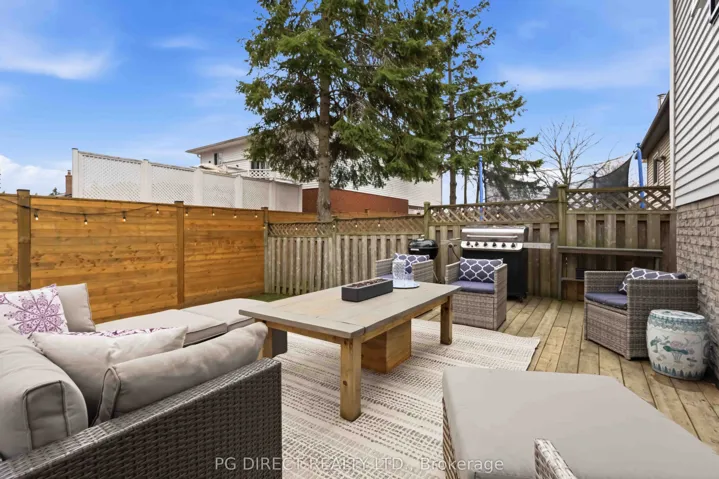 +"PublicRemarks": "Visit REALTOR website for additional information. Lovely upgraded 3+1-bedroom, 4 level backsplit with over 2,000 sq ft of total living space. Private fenced backyard with deck & patio is perfect for outdoor relaxing or entertaining. Located in great family neighborhood backing greenspace. Close to all amenities including schools, rec centre, pool, shopping and restaurants. Easy access to public transit and Hwy 401 for commuters. Enter this beautiful home by way of a covered front porch with sitting area. Spacious foyer leads to formal living and dining room with gleaming laminate flooring. The eat-in kitchen features granite counters, breakfast bar, tile backsplash, pot lights, ceramic tile floor, walk-out to backyard, pantry and stainless-steel appliances. Walk up a few steps to the bedroom area. 3 good sized bedrooms here including the primary bedroom which has a 5 pc semi ensuite bath with double sinks and a corner soaker tub. The lower level boasts a large family room (with above grade windows) and a 4 pc bath. The finished basement has a rec room and the 4th bedroom. Other highlights: newer furnace and central air conditioning; new windows 2020; interlock brick front walkway & along both sides of house to backyard; professional grade artificial grass in backyard (no maintenance); hot tub included "as is"; garden shed in backyard; 1.5 car attached garage with storage. Very well-maintained home. Affordable and move in ready!"