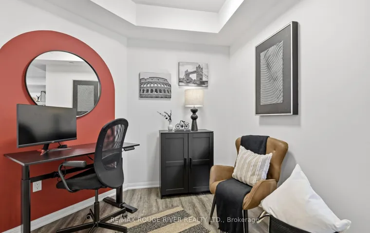 +"PublicRemarks": "Welcome to 84 Aspen Springs Unit 106. Step into effortless condo living with a layout that truly sets this unit apart. Unlike the standard floor plans in the building, this suite offers a unique design that enhances both flow and functionality. The open-concept living and dining area feels bright and welcoming, ideal for everyday comfort or hosting guests. The kitchen is well-appointed with quartz countertops, an undermount sink, modern backsplash, and a peninsula with breakfast bar seating. A separate den provides a flexible space, perfect for a home office, reading nook, or additional dining area. The primary bedroom features a large closet and semi-ensuite access. Located on the first floor, this unit offers true everyday convenience with direct, stair-free access, no elevators, no waiting, just easy in-and-out living. With parking just steps from the entrance, daily routines like carrying groceries or coming home at the end of the day are seamless. Unwind on your private balcony overlooking the courtyard. Ideally situated minutes to shopping, restaurants, transit, a movie theatre, and Hwy 401. Amenities include a gym, party/meeting room, visitor parking, and playground"
