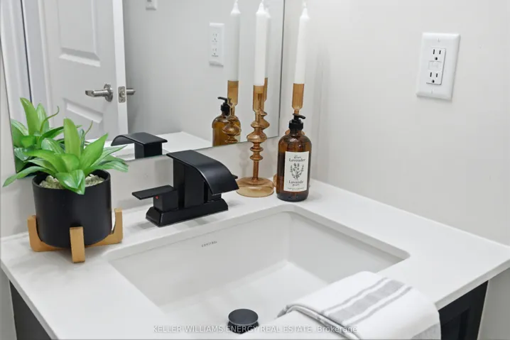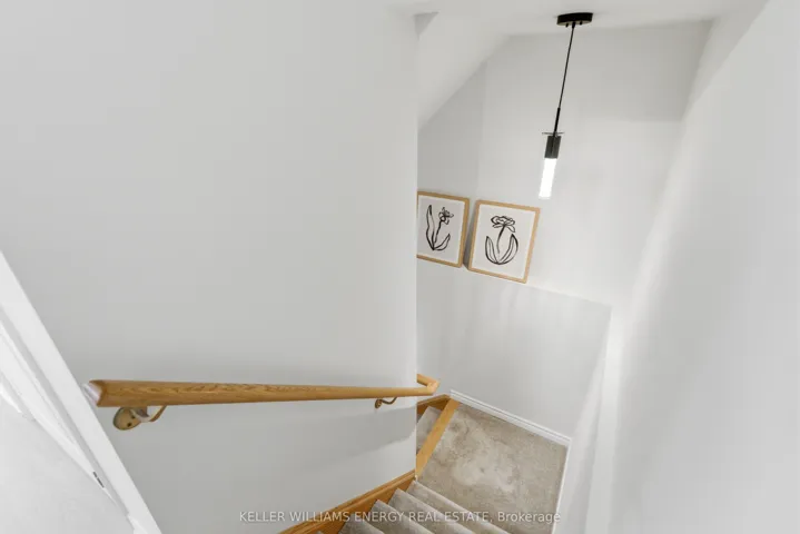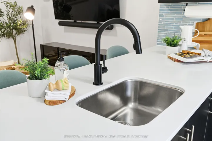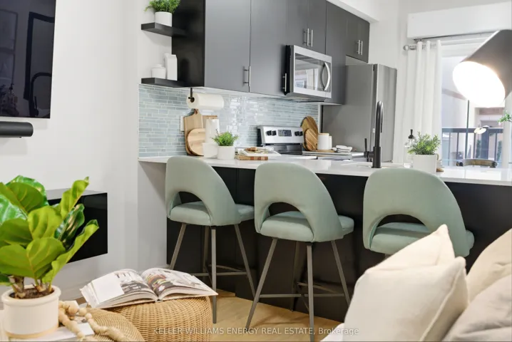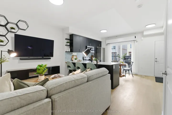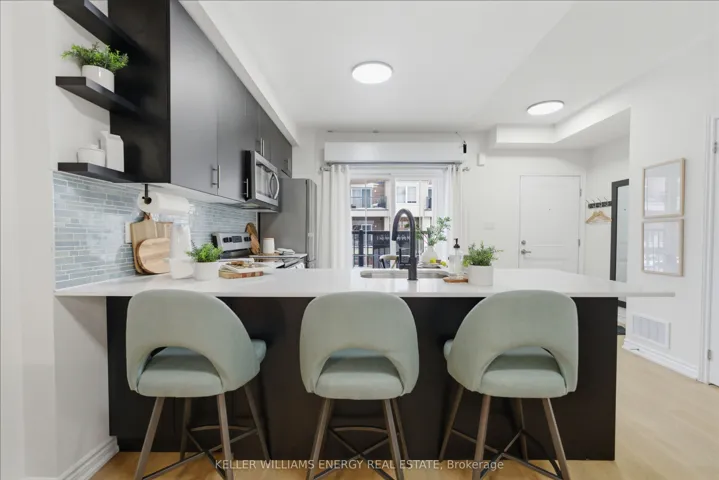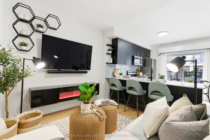 +"PublicRemarks": "Just 4 Years New, This Beautiful Two-Level Townhome Offers A Thoughtfully Designed, Open-Concept Main Level That Maximizes Both Space And Flow. Vinyl Flooring Runs Throughout The Main Floor, Which Also Includes A Convenient Powder Room And A Large Closet. The Sleek, Modern Kitchen Seamlessly Connects To The Living Area, Creating A Bright And Functional Space Ideal For Both Everyday Living And Entertaining. The Living Room Is Warm And Inviting, And Features An Electric Fireplace. The Kitchen Features A Stylish Backsplash, Quartz Countertops, Stainless Steel Appliances, And A Peninsula With Additional Seating That Naturally Bridges The Kitchen And Living Room. A Walk-Out From The Kitchen Leads To A Cozy Private Balcony, The Perfect Spot To Enjoy Your Morning Coffee. The Lower Level Features Two Bedrooms With Above-Grade Windows, A 4-Piece Bathroom, And Convenient In-Suite Laundry. This Home Presents An Excellent Opportunity To Own A Modern Townhome In A Central Location, Just Minutes To All Amenities, Transit, Highway 401, And Nearby Running Paths!"