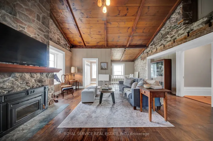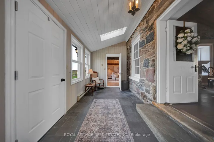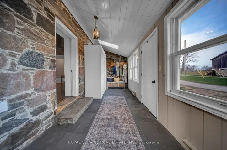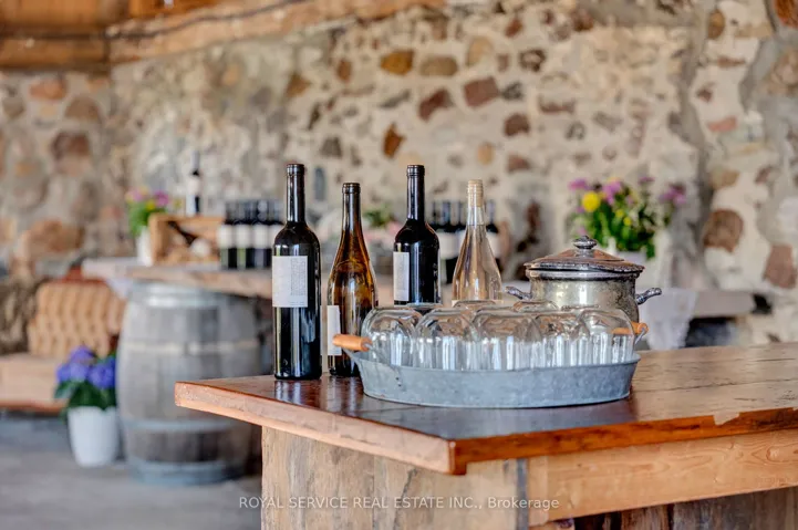 +"PublicRemarks": "Set on rolling countryside just outside Orono this circa 1840 stone farmhouse & vineyard offers something rarely found a home a lifestyle & an opportunity all in one.From the moment you arrive the setting tells the story. Open fields fenced paddocks & a thoughtfully maintained property that has supported horses chickens & more. Peaceful private yet remarkably accessible just minutes to Hwy 407 115/35 Brimacombe Ski Hill & the Ganaraska Forest.Inside the home balances history with function. Original stonework wide plank floors barn board accents & detailed wood trim speak to its roots while soaring ceilings & geothermal heating & cooling bring everyday comfort.The kitchen is the heart of the home. Custom hardwood cabinetry with crown moulding built-in appliances including dual ovens & integrated dishwasher a large farmhouse sink & generous prep space plus a butcher block baking area with open shelving. Penny tile flooring adds character. The space flows into the dining room & family room creating a natural gathering place.The formal living room offers a quieter retreat with an adjoining den behind pocket doors currently used as a bedroom. A full 4-piece bathroom on the main floor allows for flexible use including one-floor living.A standout is the vaulted great room a warm inviting space with wood ceilings natural light & endless potential as a studio lounge or multipurpose retreat.Upstairs offers bright well-proportioned rooms including a primary bathroom with heated floors blending comfort with the home's timeless feel.Beyond the home the land & outbuildings support a variety of uses from hobby farm to equestrian setup. The professionally established vineyard with planted vines & tiled fields adds a unique dimension & has helped make this a known destination currently operating as a family-friendly winery.This is not just a property to own but one to experience where home land & lifestyle come together in a way that is increasingly hard to find."