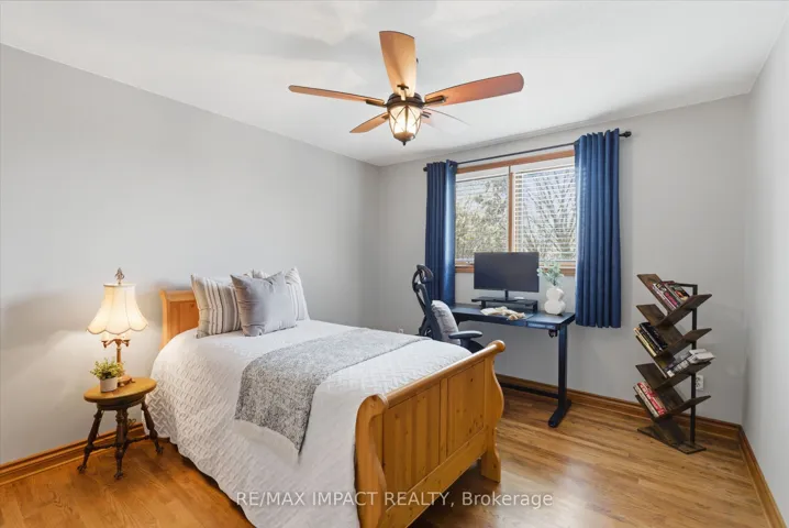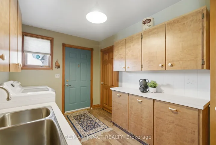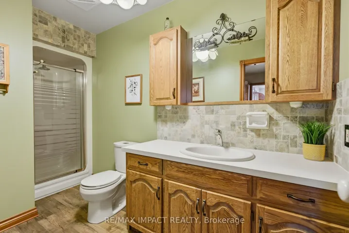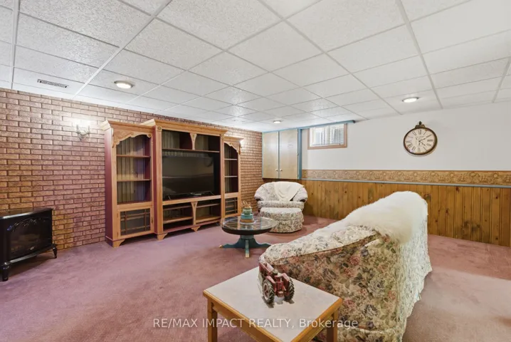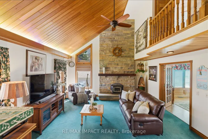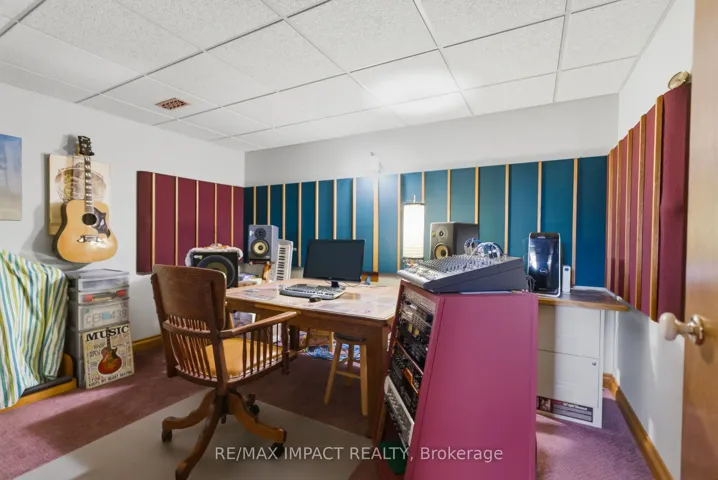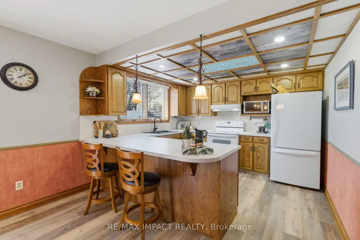 +"PublicRemarks": "Beautiful brick 2100 sf residence with a charming veranda plus a finished basement and an attached double garage. Nestled on a generous 1/4 acre lot, this property backs onto farmlands, providing a peaceful country setting. As you enter, you're greeted by a beautiful foyer leading into the great room, where the cedar vaulted ceiling adds warmth and character. The main floor features a versatile den with walkout to a cedar deck, perfect for outdoor relaxation. The expansive kitchen and eating area boasts a breakfast bar with stylish pendant lights, closet pantry, Torleys vinyl flooring, and includes the appliances. Convenient main floor laundry room, featuring double and single sinks, ceramic backsplash, vinyl flooring, 3-piece washroom and direct access to the double garage. 3 spacious bedrooms on the upper level with the primary suite having hardwood flooring, double closet, single closet, and 5-piece ensuite bathroom with hallway access. The finished recreation area features a dry bar with vinyl flooring. There's also an office equipped with built-in cabinets and a ceramic backsplash. A large 2-room music studio is fully wired with sound proofing in the ceiling and walls, also holds potential for conversion into an additional bedroom if needed. The basement also includes a separate cold room, furnace room, and ample storage options. The attached double garage is designed for convenience, featuring three overhead doors, two at the front and one at the rear, allowing for 6+ vehicle parking on the brick driveway. Additional highlights include a fully insulated and heated vinyl-sided shop (24x14) with a subfloor, 60 amp service and welder plug, as well as a negotiable outside canvas dome. Note - roof shingles were replaced in 2017, 200 amp service, cladded windows, Rogers internet, and basement sub-floor."