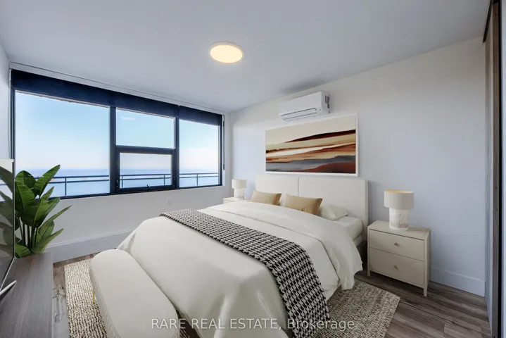 +"PublicRemarks": "Welcome to an exceptional penthouse residence, fully renovated from top to bottom and offering a modern, luxurious retreat overlooking protected conservation land and the waters of Lake Ontario. This spacious 1,420sf three bedroom, two bathroom home features a refined primary suite with a three piece ensuite and walk in closet. Throughout the home are brand new windows, radiant heating, individual heat pump AC units for year round comfort, and parking available through the building on a monthly rental basis.The open concept living, dining, and Italian designed kitchen form the heart of the home, complete with full size stainless steel appliances, an oversized waterfall quartz island, and a striking tiled feature wall. A dedicated laundry room with custom shelving adds everyday functionality, while new vinyl flooring flows throughout the home, aside from the bathrooms. Roller shades with safety cords finish every window.The expansive northeast facing terrace spans over 512sf and serves as an extension of the living space during warmer months, offering power outlets, BBQ capability, and rare unobstructed views of Lake Ontario and preserved green space.Residents enjoy an impressive selection of amenities including an outdoor pool, tennis court, gym, sauna, EV charging, bike storage, and a dedicated outdoor BBQ area. Twenty four seven emergency service and upcoming common area upgrades add to the appeal. Notably, this is not a condo building, offering added stability for long term tenants.Located in the highly sought after Guildwood Village community, the area blends natural beauty with urban convenience. Enjoy nearby dining, shopping, excellent transit connections, golf clubs, and kilometres of scenic walking paths. This is lakeside living at its finest in one of Toronto's most picturesque neighbourhoods."